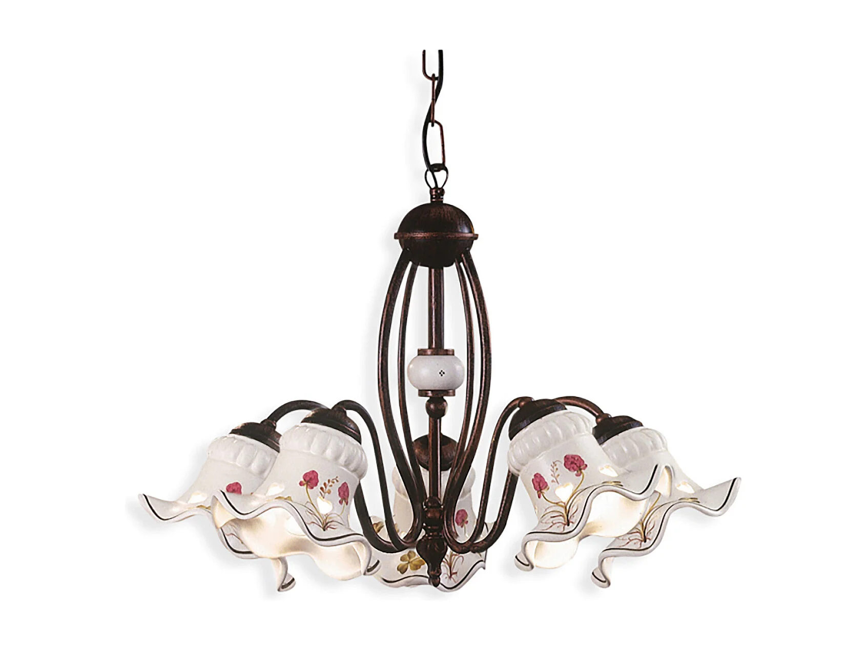 Lampadario Classico Chieti Metallo E Ceramica Nero Sfumato Rame 5 Luci E14