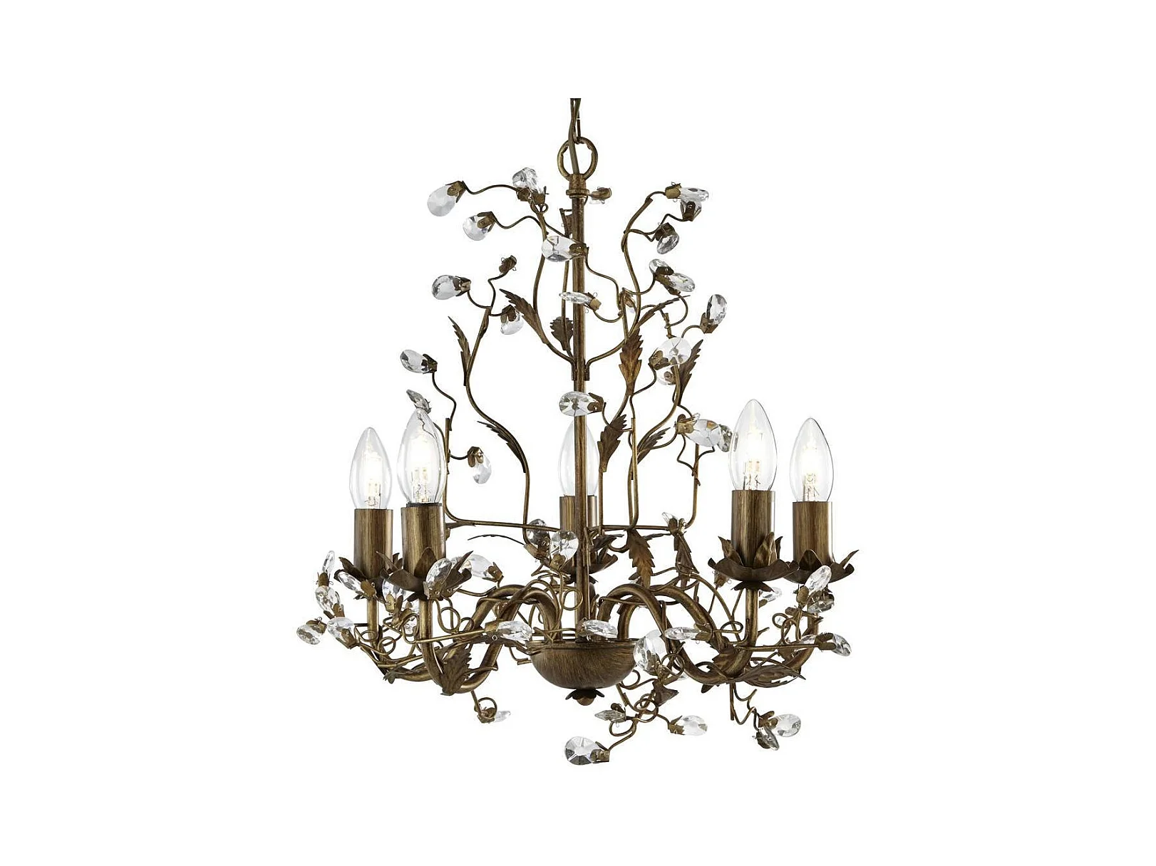 Armand 5 ljus ljuskrona, åldrad mässing, skärm i glas