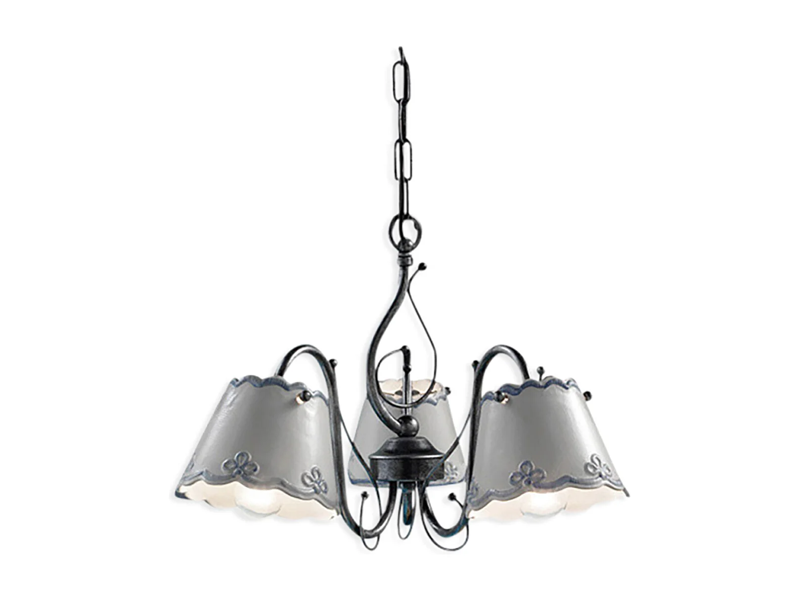 Lampadario Classico Chieti Metallo E Ceramica Nero Sfumato Argento 3 Luci E14