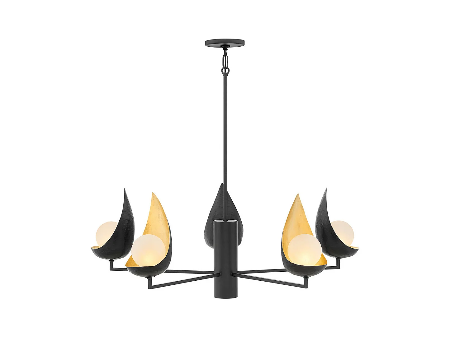Lampadario Contemporaneo Ren Acciaio Nero Opaco Oro 5 Luci G9 3 Led