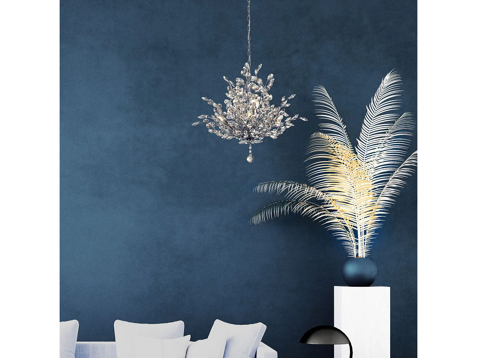 Lampadario Classico Gioiello Acciaio Cromo Vetro Trasparente 8 Luci E14