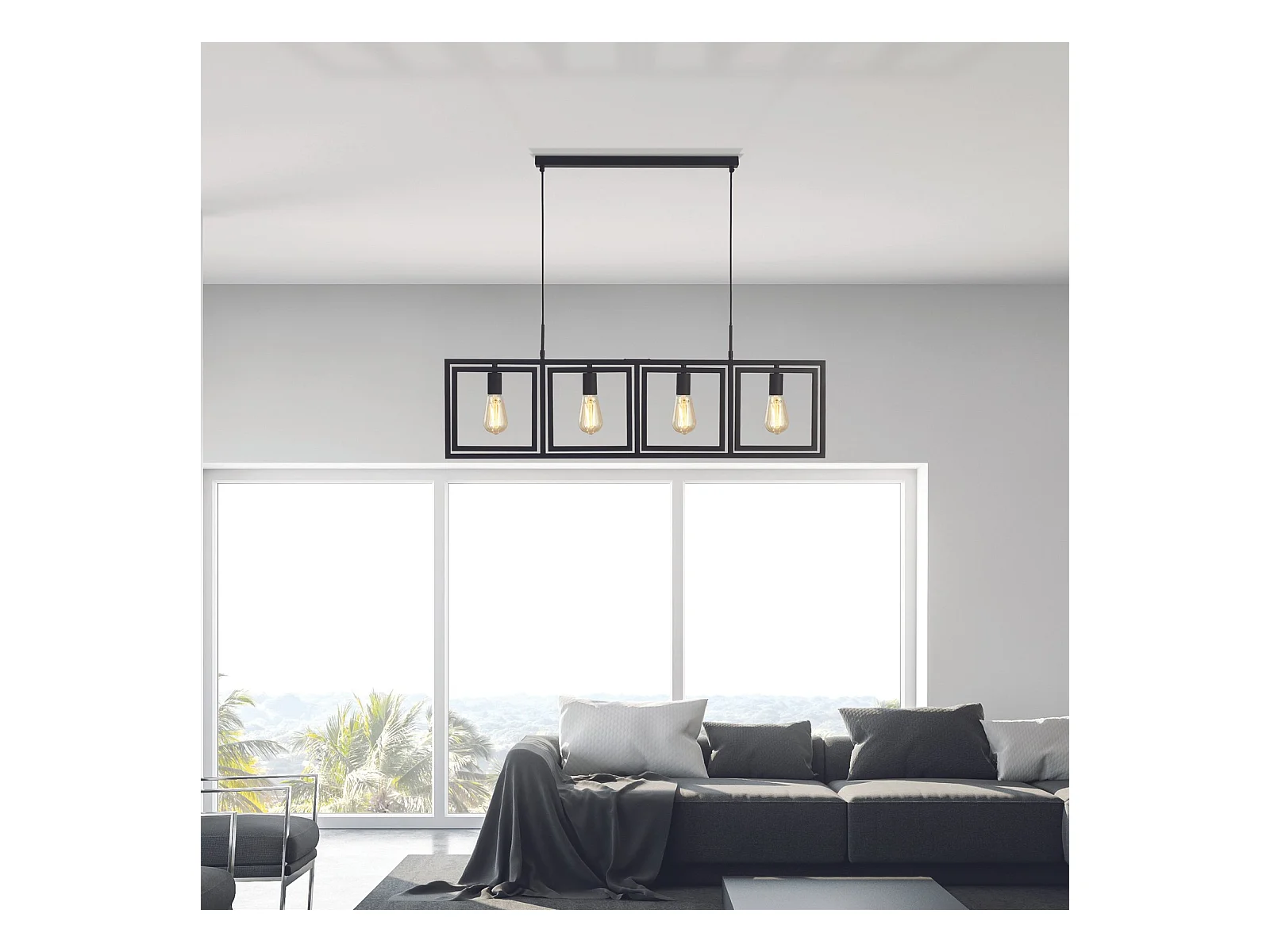 Lampadario Contemporaneo Plaza Acciaio Nero 4 Luci E27