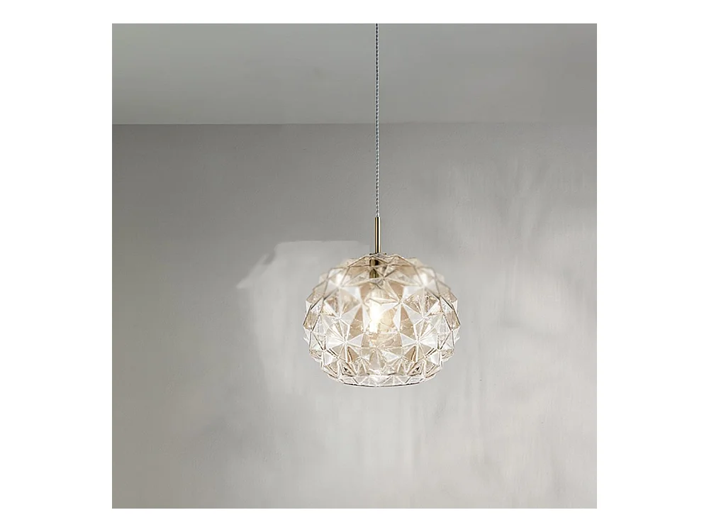 Lampadario Alluminio Contemporaneo Meteora Ambra 1 Luce E27 Vetro