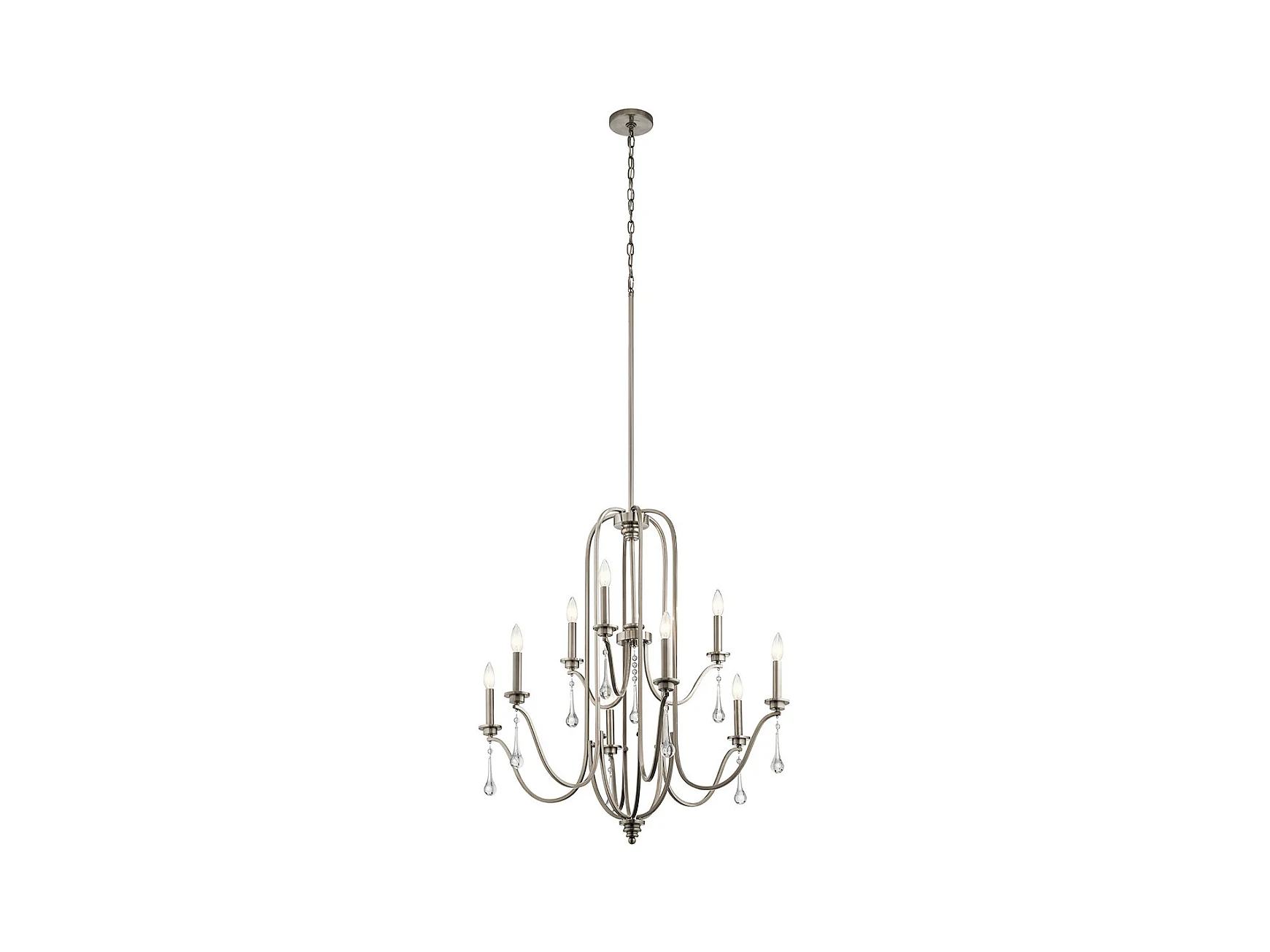 Lampadario Classico Karlee Acciaio Peltro Classico Cristallo 9 Luci E14