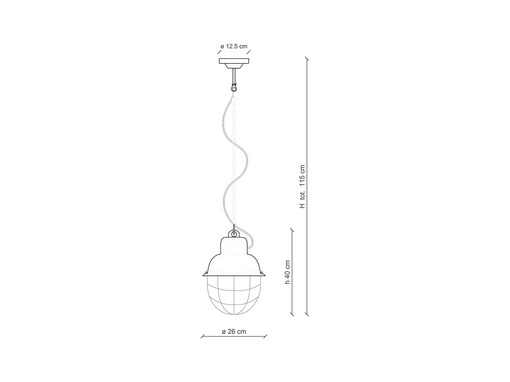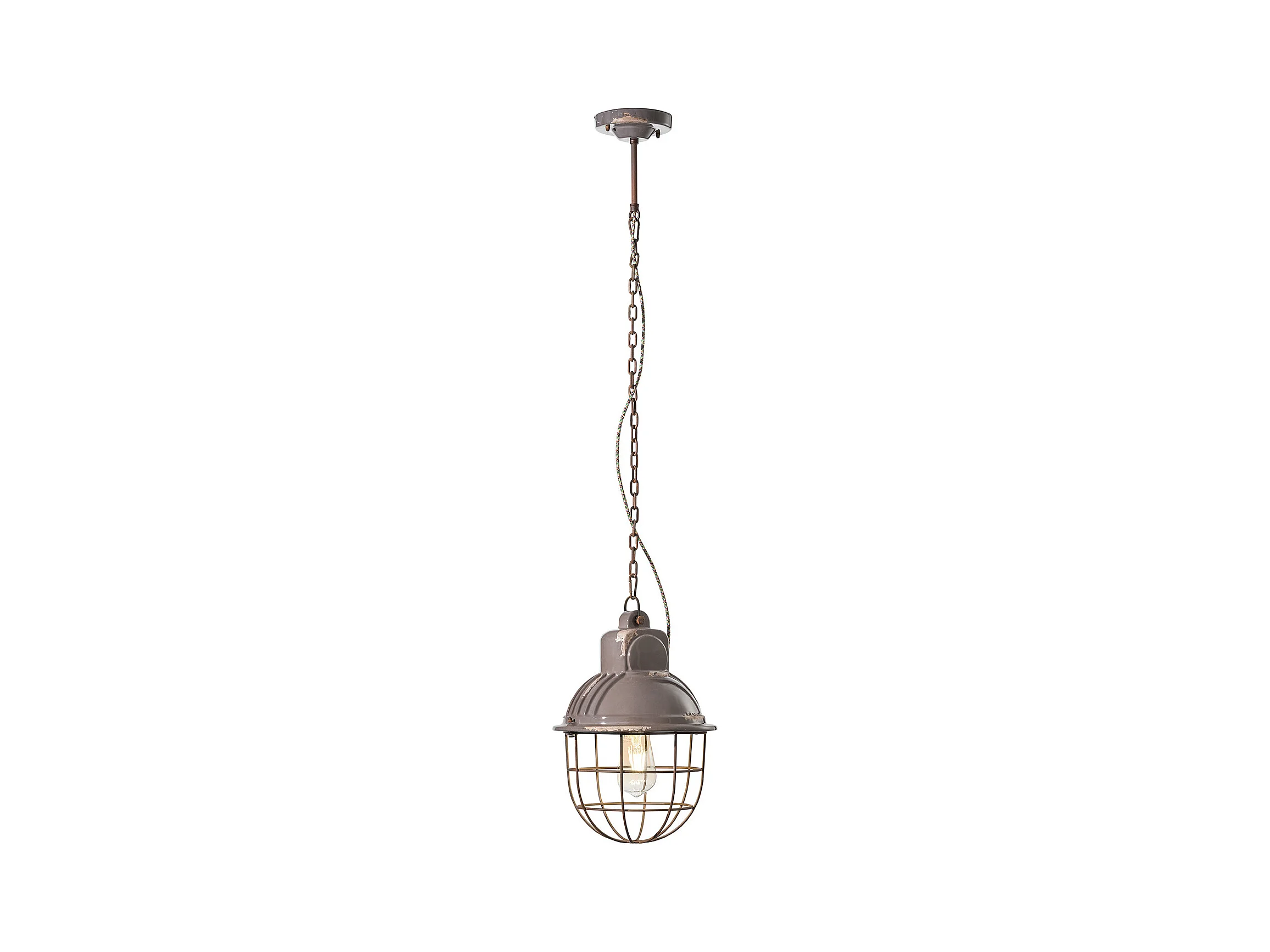 Lampadario Industrial Ferro E Ceramica Con Rete Vintage Tortora 1 Luce E27 26Cm