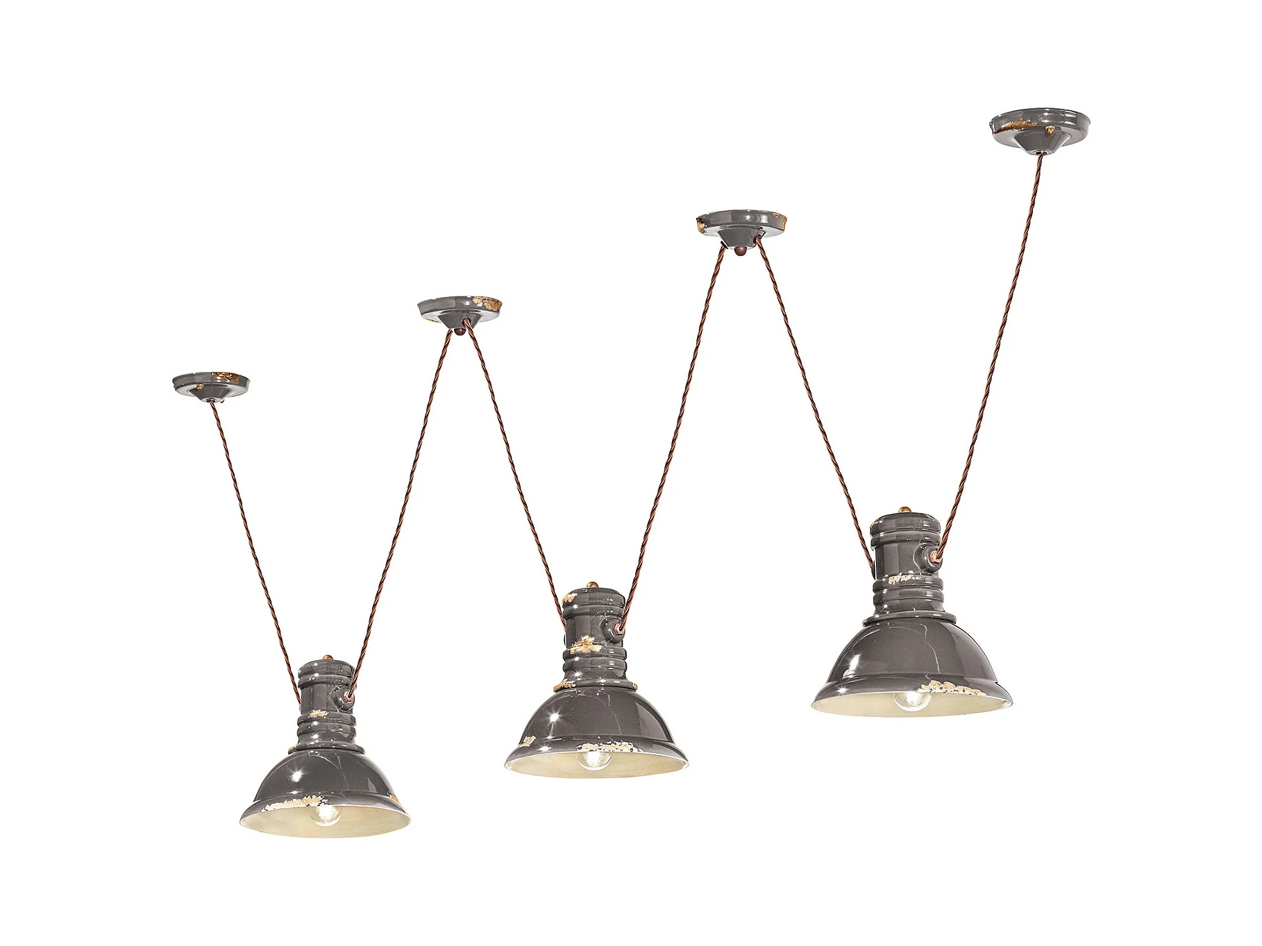 Lampadario Industrial Ferro E Ceramica Vintage Tortora 3 Luci E27