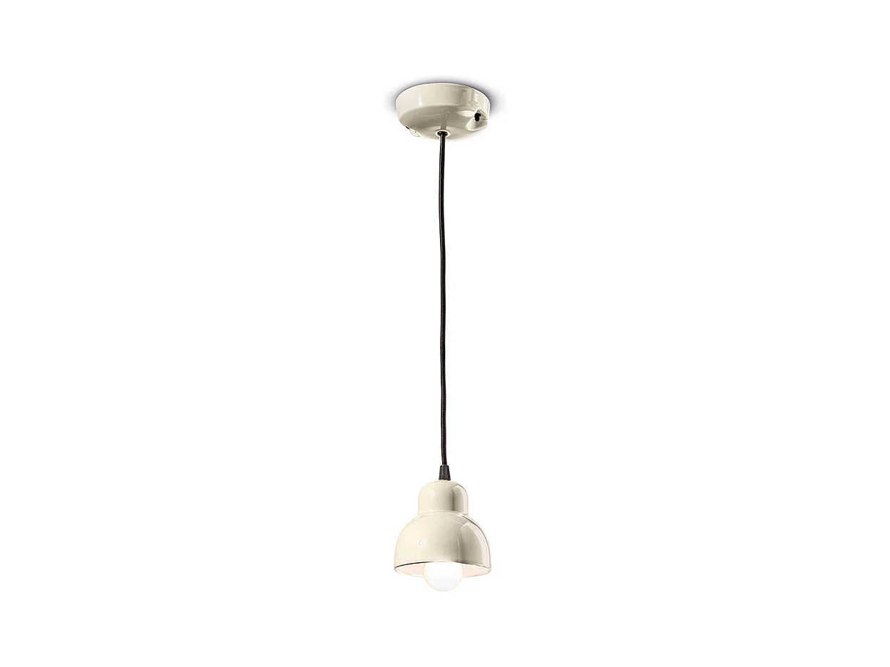 Lampadario Vintage Decò Berimbau Ceramica Crema 1 Luce E14