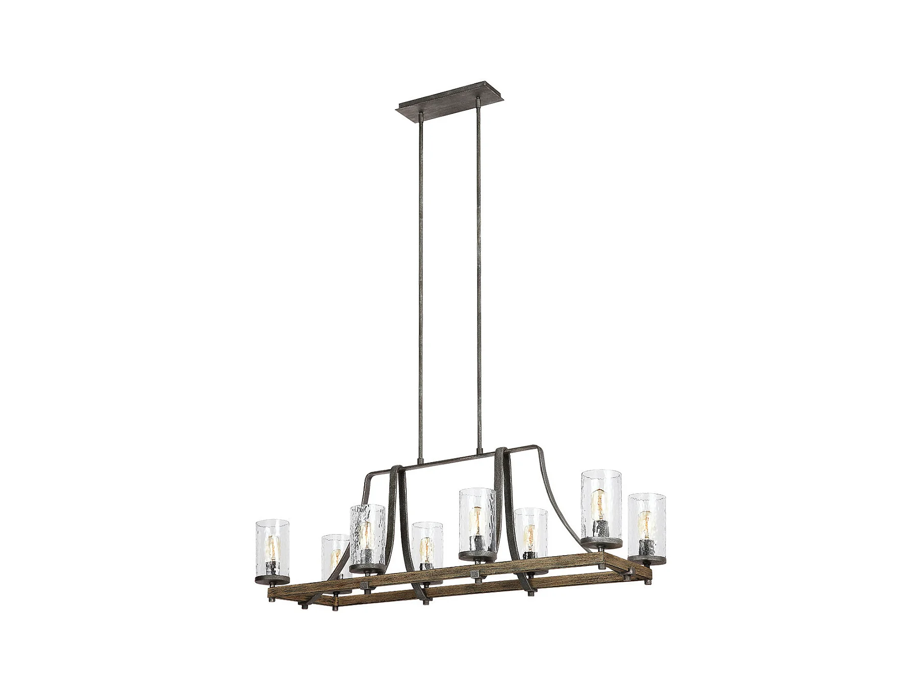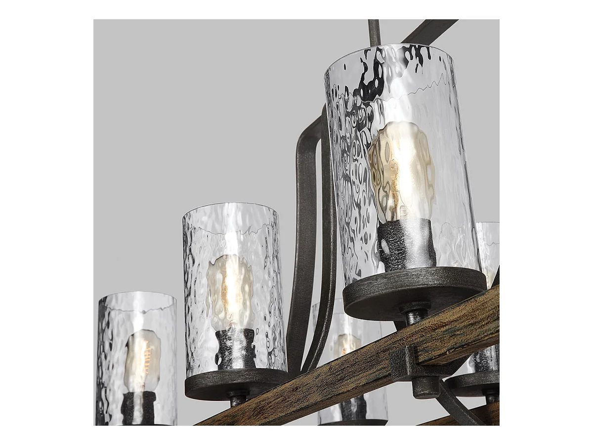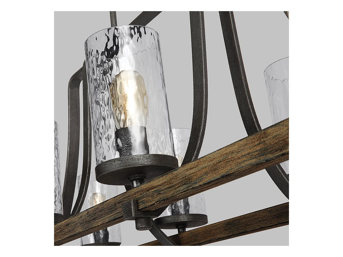 Lampadario Industrial Angelo Acciaio Anticato Metallo Vetro Grigio 8 Luci E27