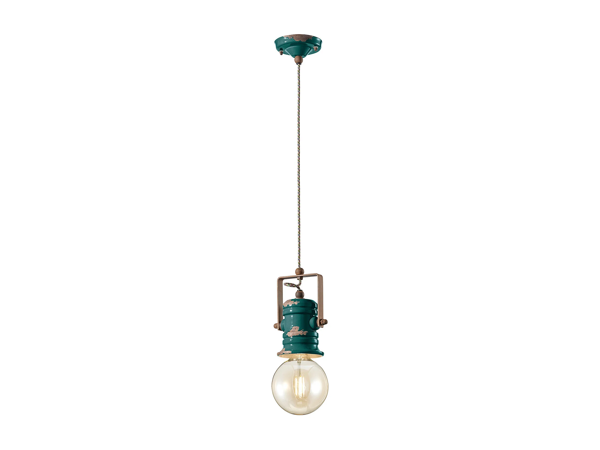 Lampadario Industrial Minimal Urban Ferro E Ceramica Vintage Verde 1 Luce E27