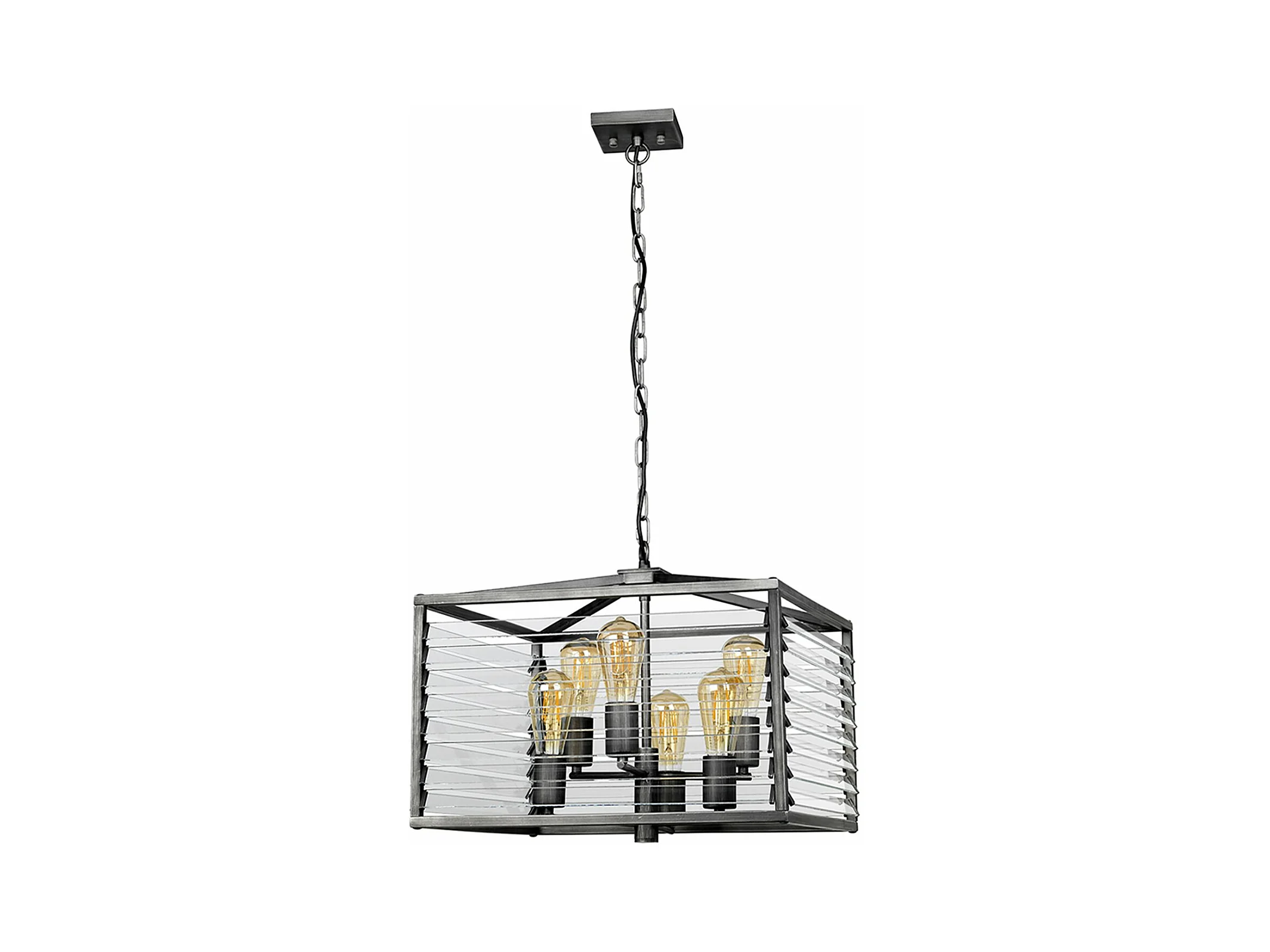Lampadario Industrial Nordico Louvre Acciaio Ccanna Di Fucile Vetro 6 Luci E27