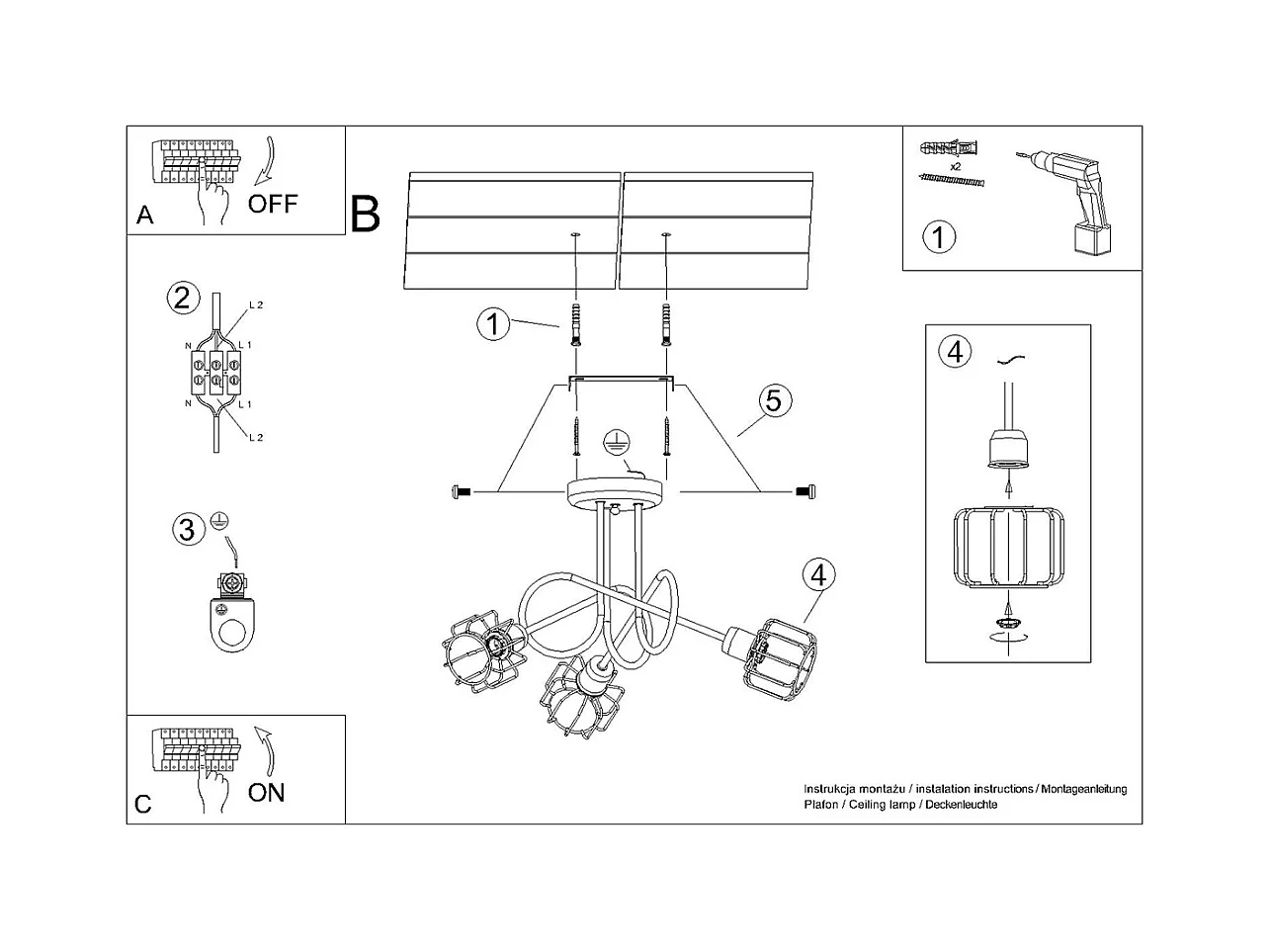 Sollux MINERWA - Lámpara de araña de 5 brazos con múltiples luces Negro, E14