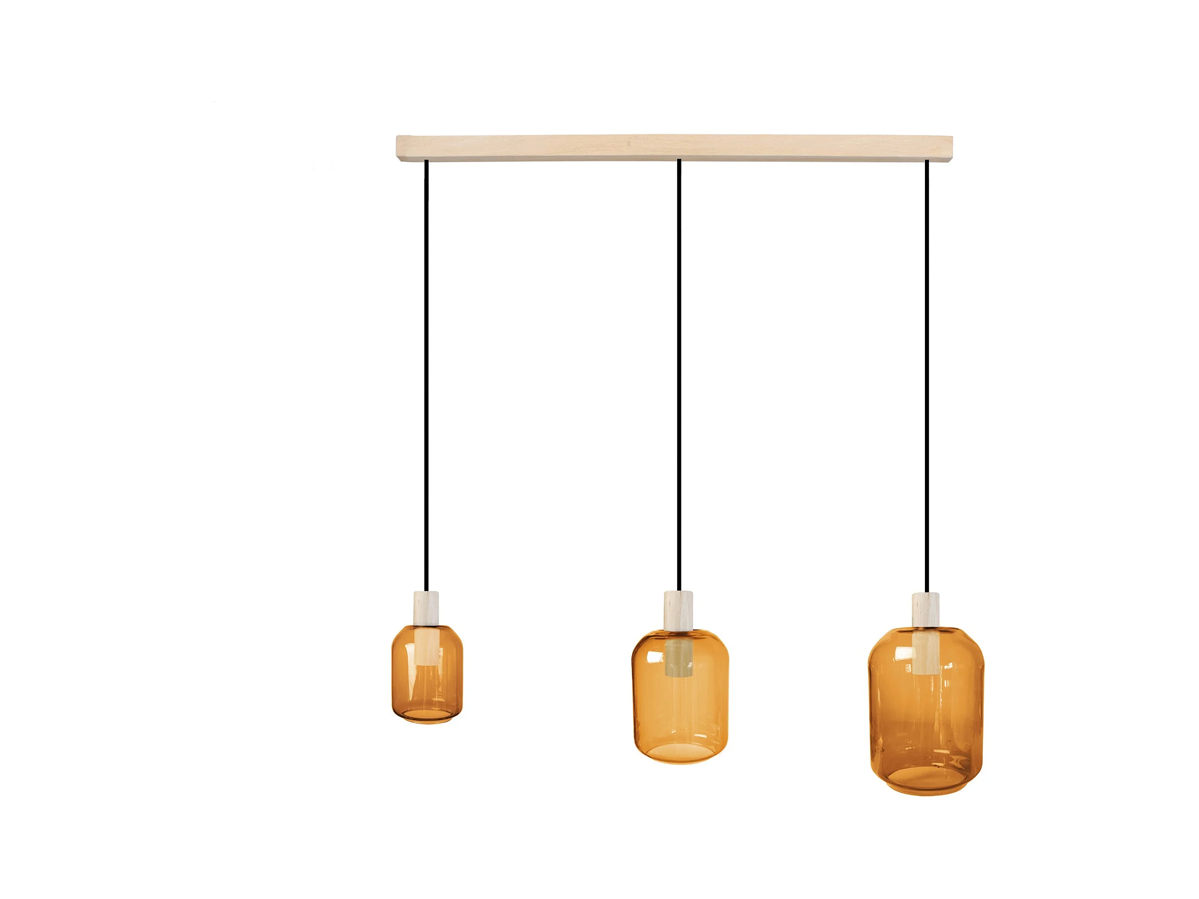 Lámpara de Araña TOSEL ,madera y cristal ,AMARILLO, A100xD20xP 60cm