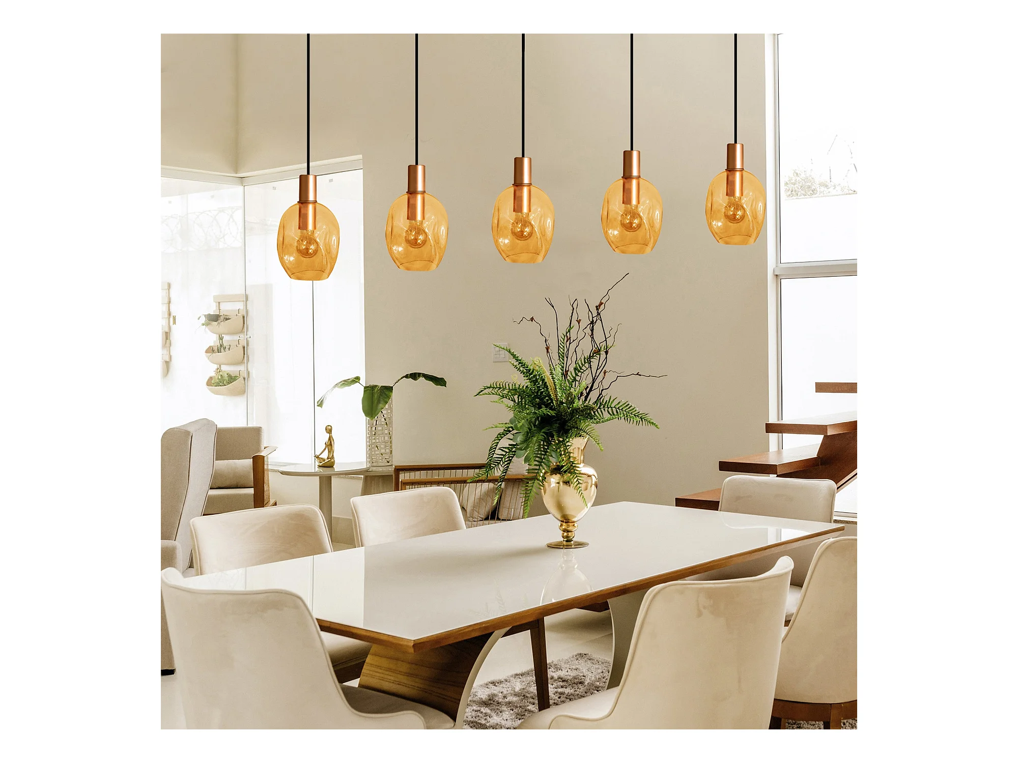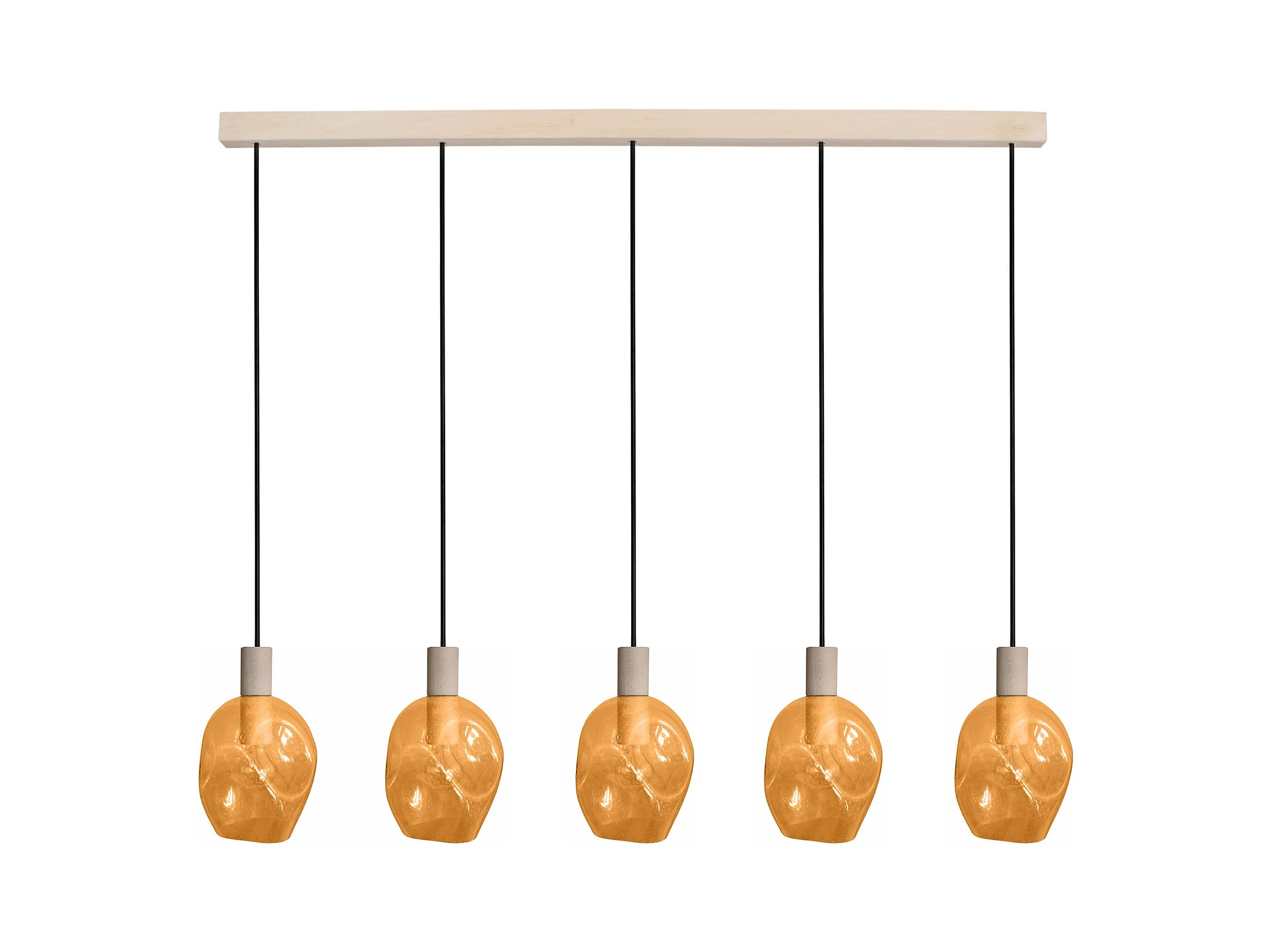 Lámpara de Araña TOSEL ,madera y cristal ,AMARILLO, P 100xD20xD60cm