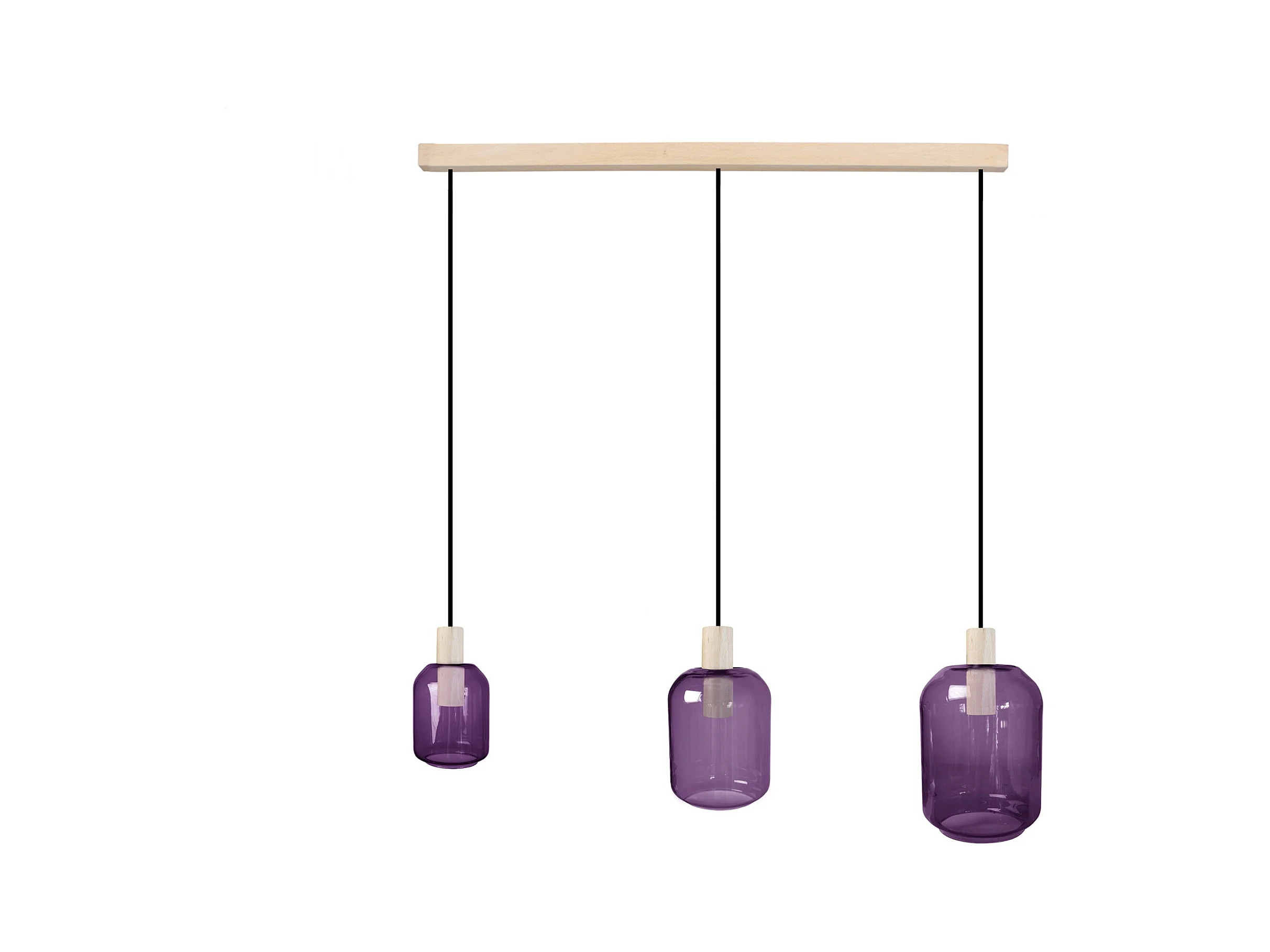 Lámpara de Araña TOSEL ,madera y cristal ,violeta s, A 100xD20x P 60cm