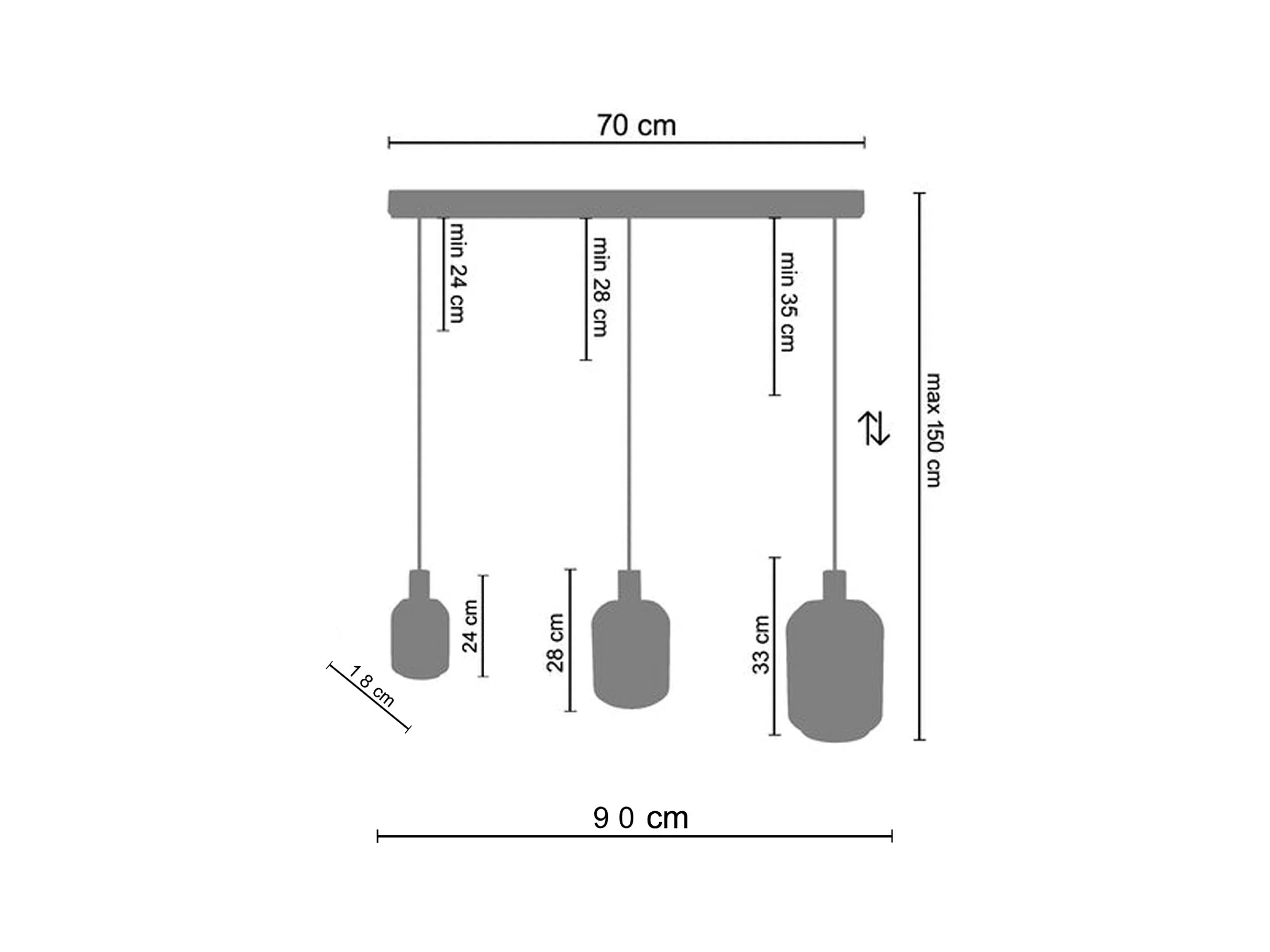 Lámpara de Araña TOSEL ,metal y cristal,nogal ,A100xD20xP60 cm