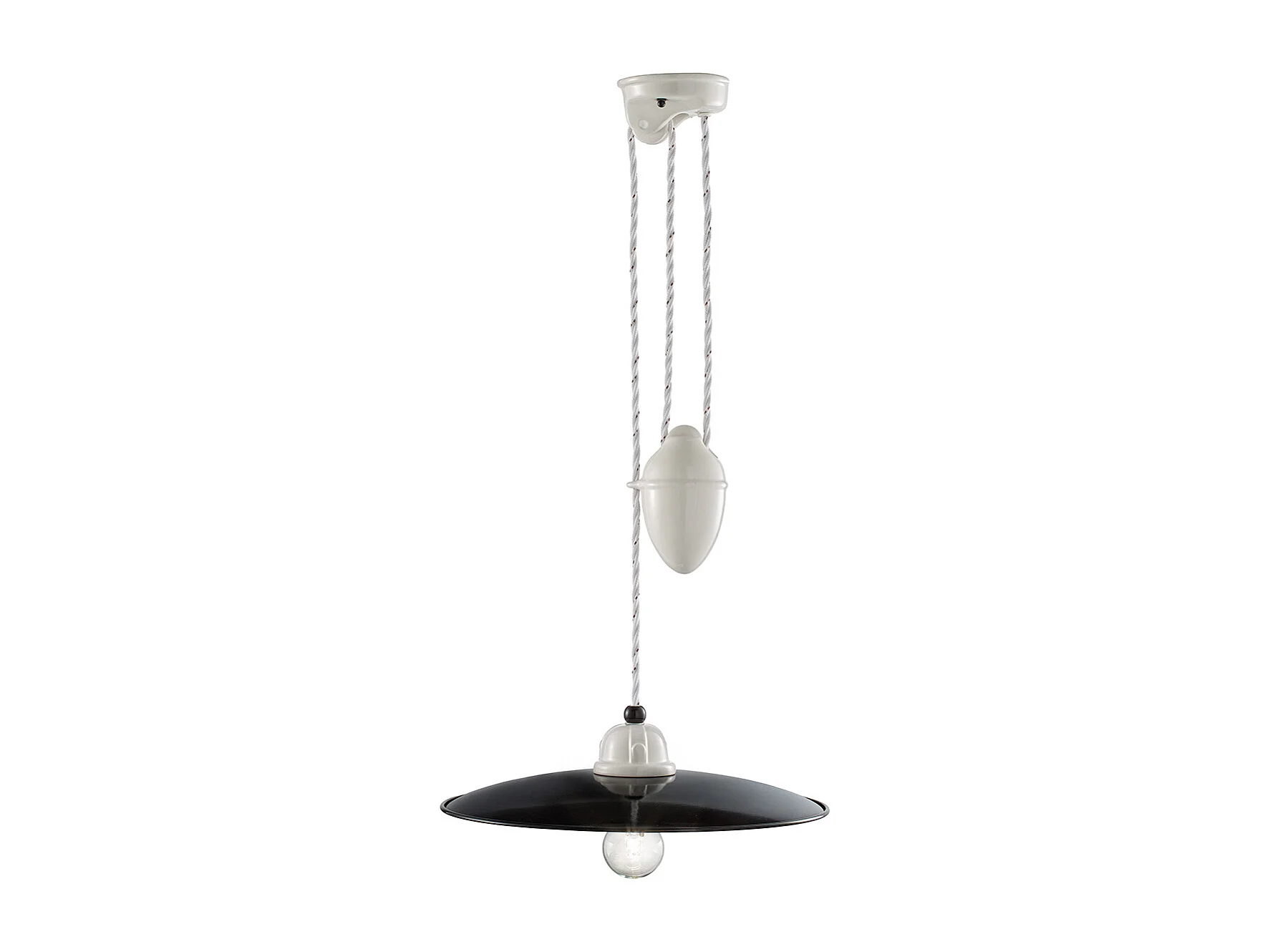 Lampadario Vintage Saliscendi B&W Metallo Smaltato Nero E Bianco 1 Luce E27 35Cm