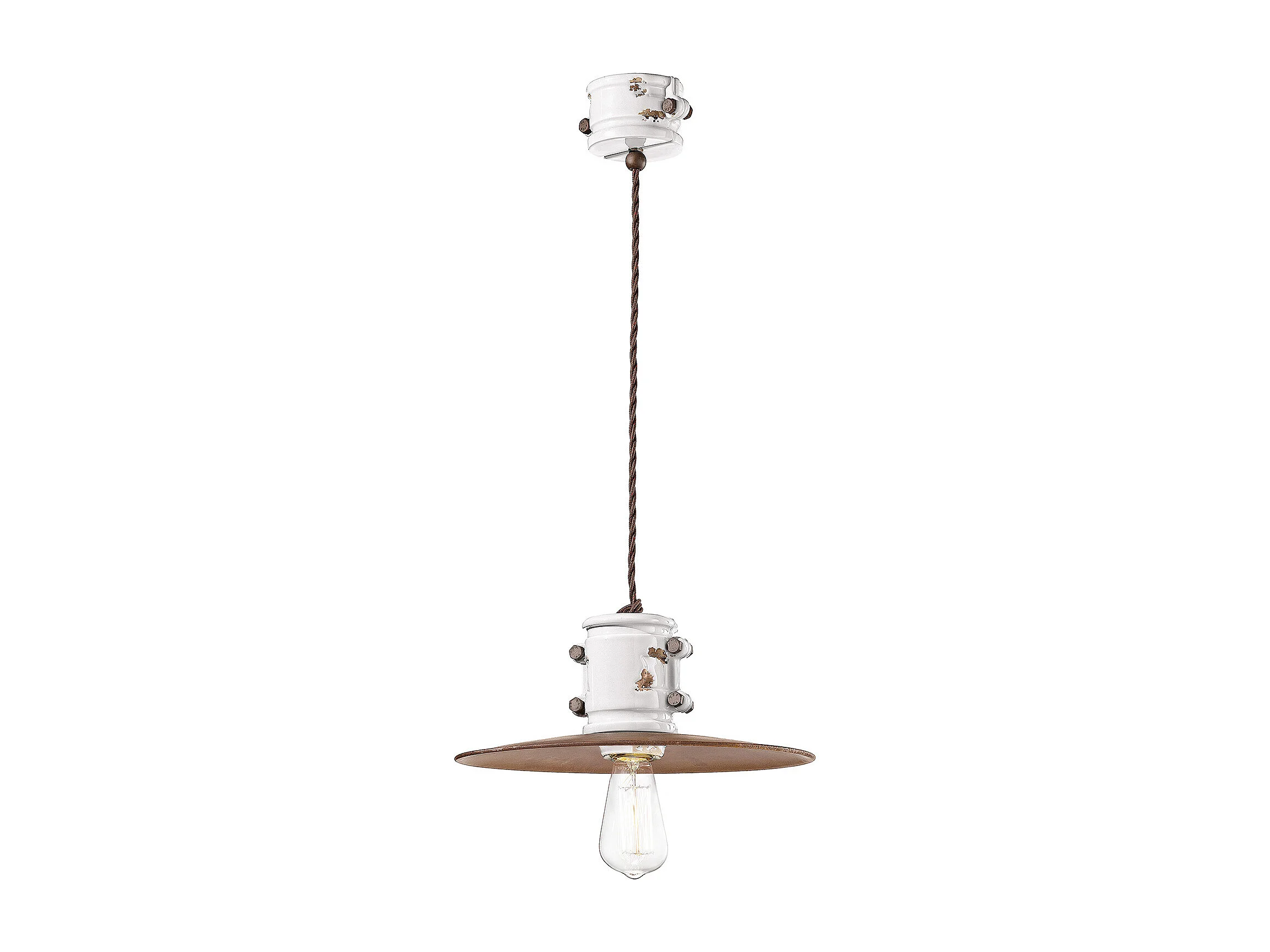 Lampadario Vintage Urban Ferro E Ceramica Bianco 1 Luce E27 40Cm