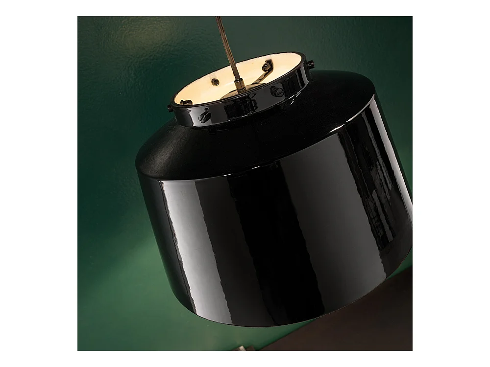 Lampadario Vintage 50'S Ferro E Ceramica Smaltato Nero 1 Luce E27 40Cm