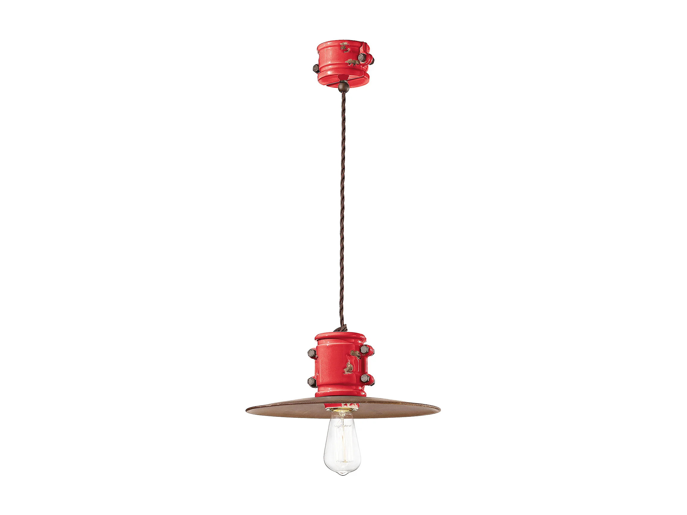 Lampadario Vintage Urban Ferro E Ceramica Rosso 1 Luce E27 40Cm