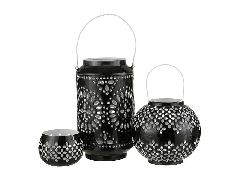 Lámpara alta perforada de hierro negro 17x17x30cm