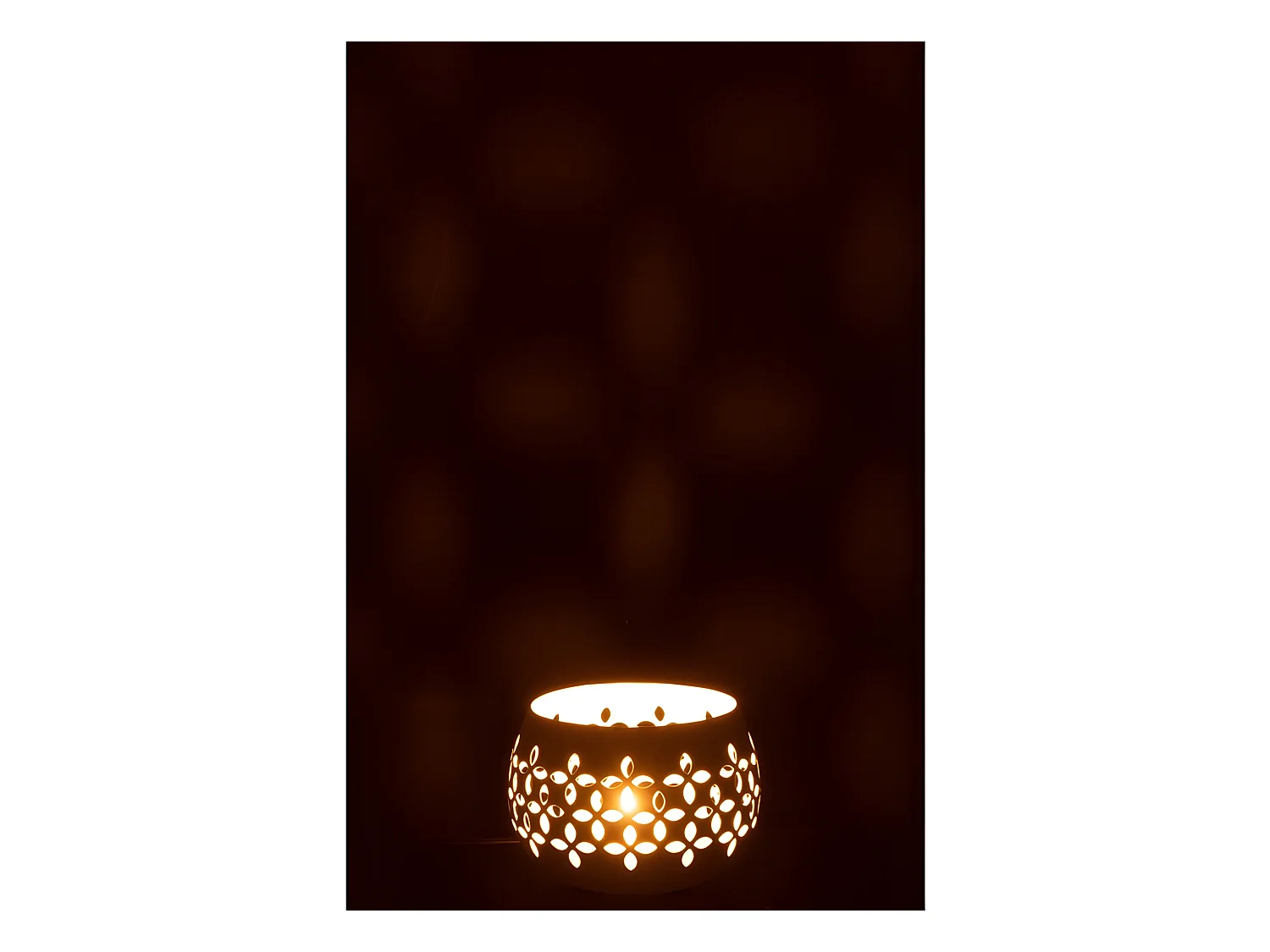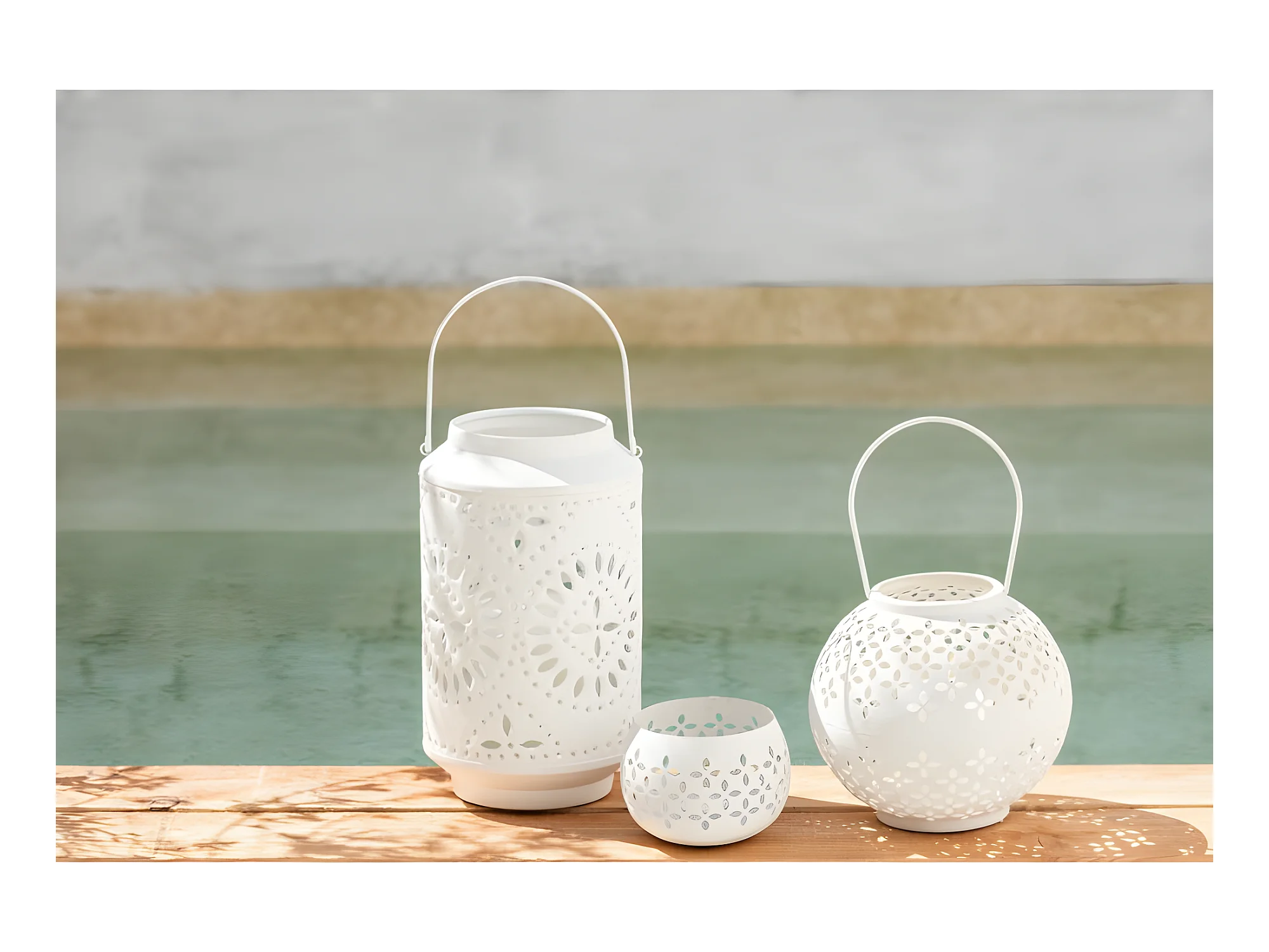 Lámpara de hierro perforada en blanco 13x13x9cm