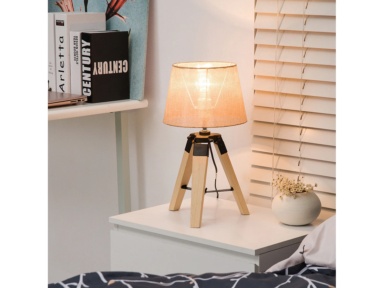 Lámpara de mesa crema 24x24x45 cm HOMCOM