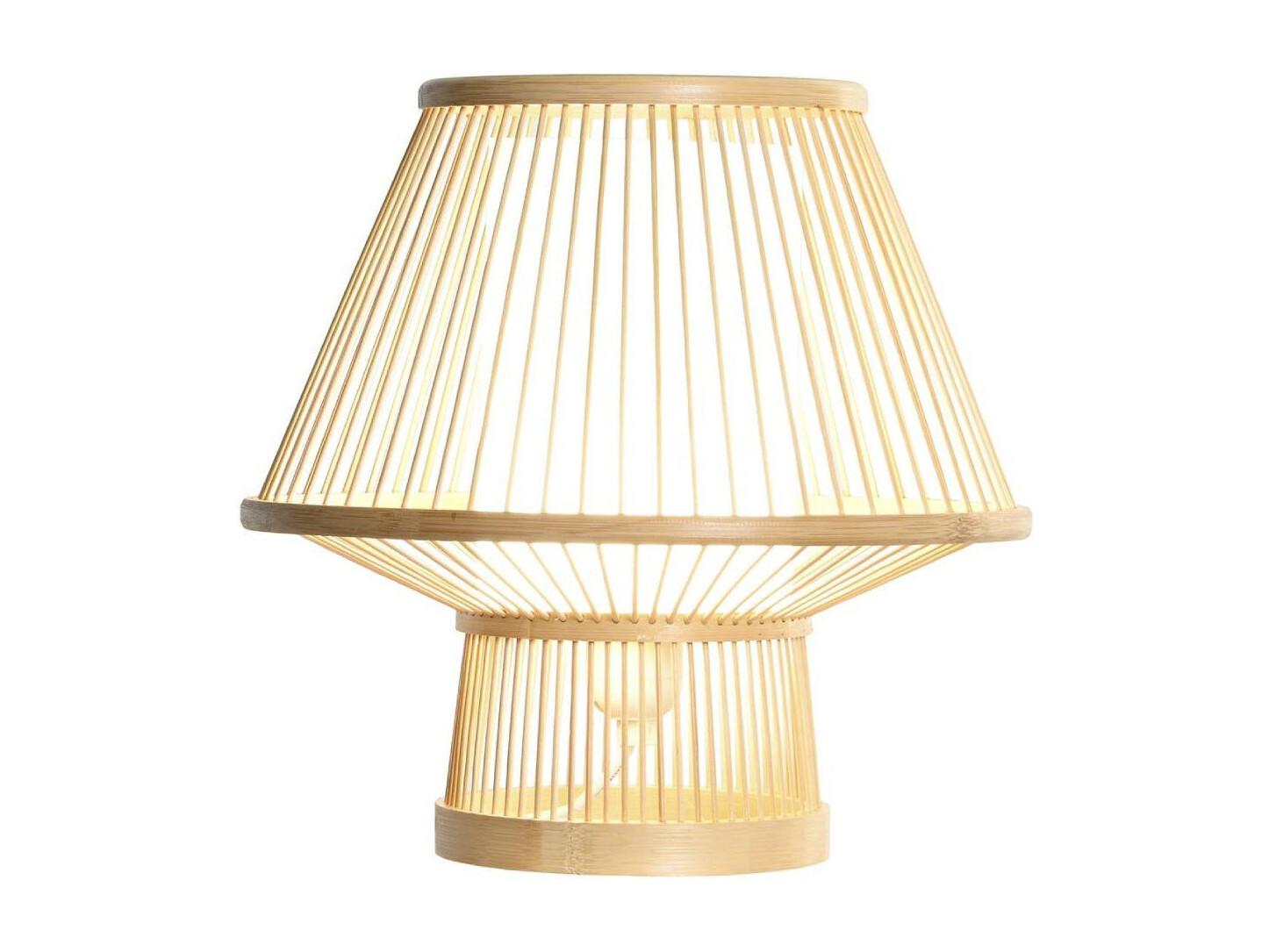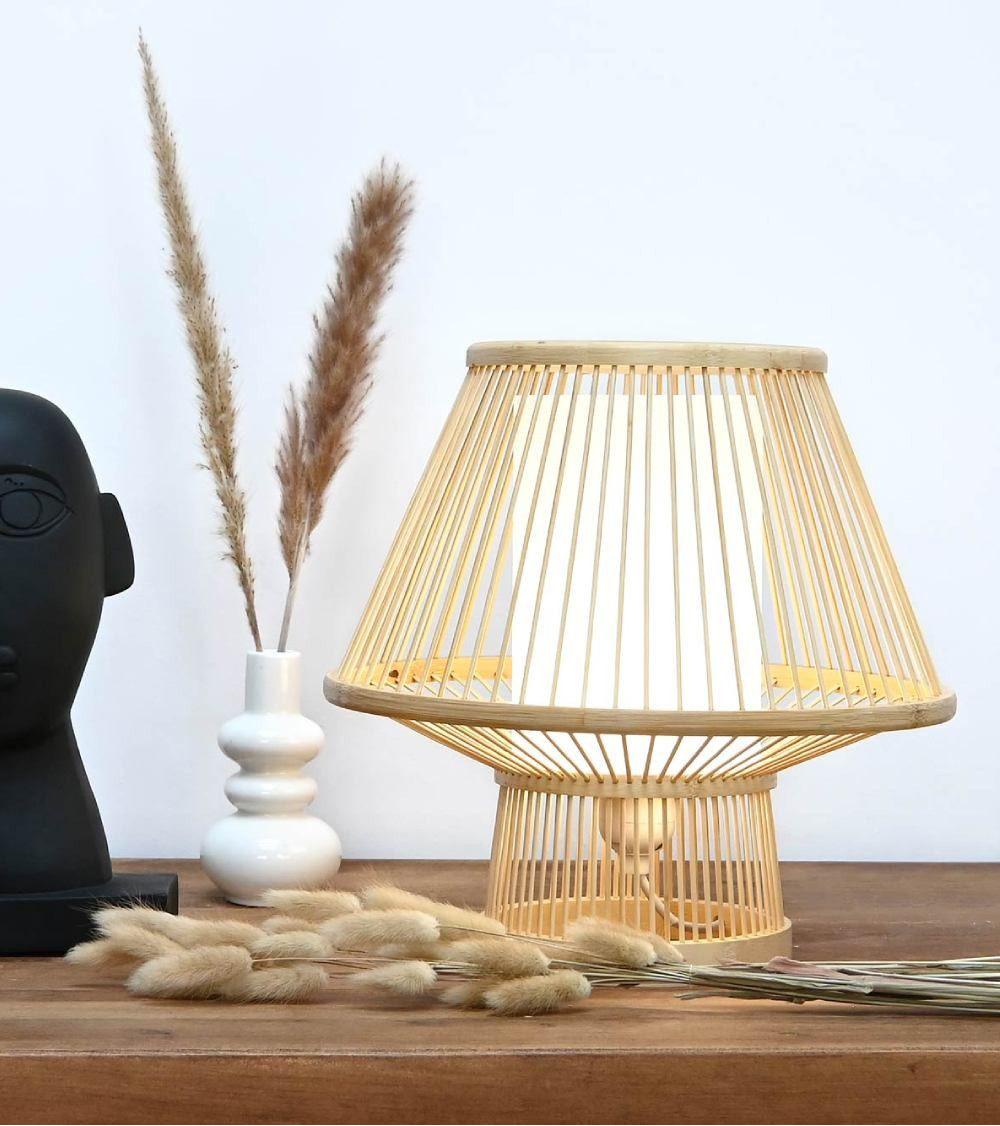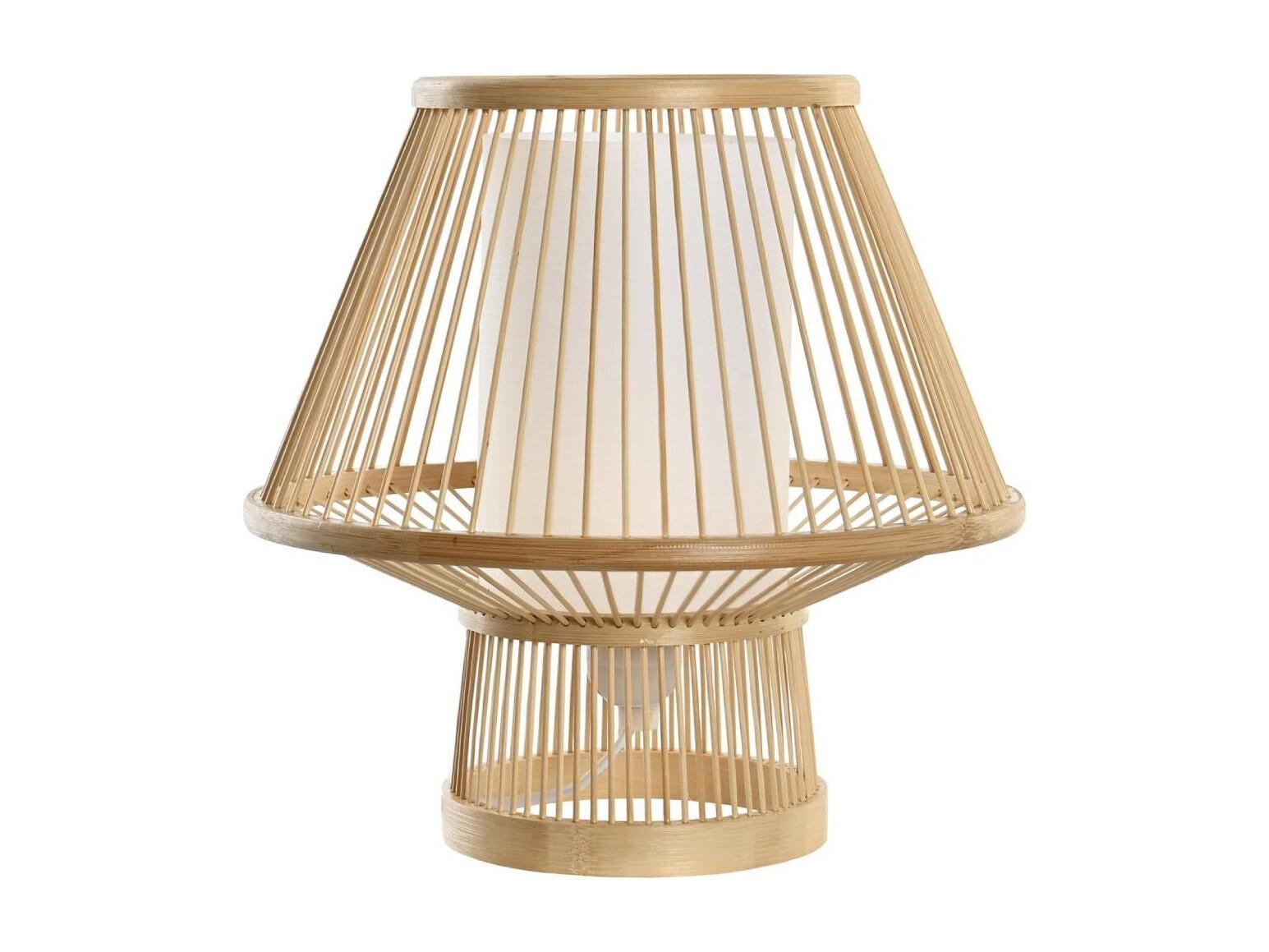 Lámpara de mesa de 30x30x30 cm de bambú natural de diseño boho en color beige Agatha
