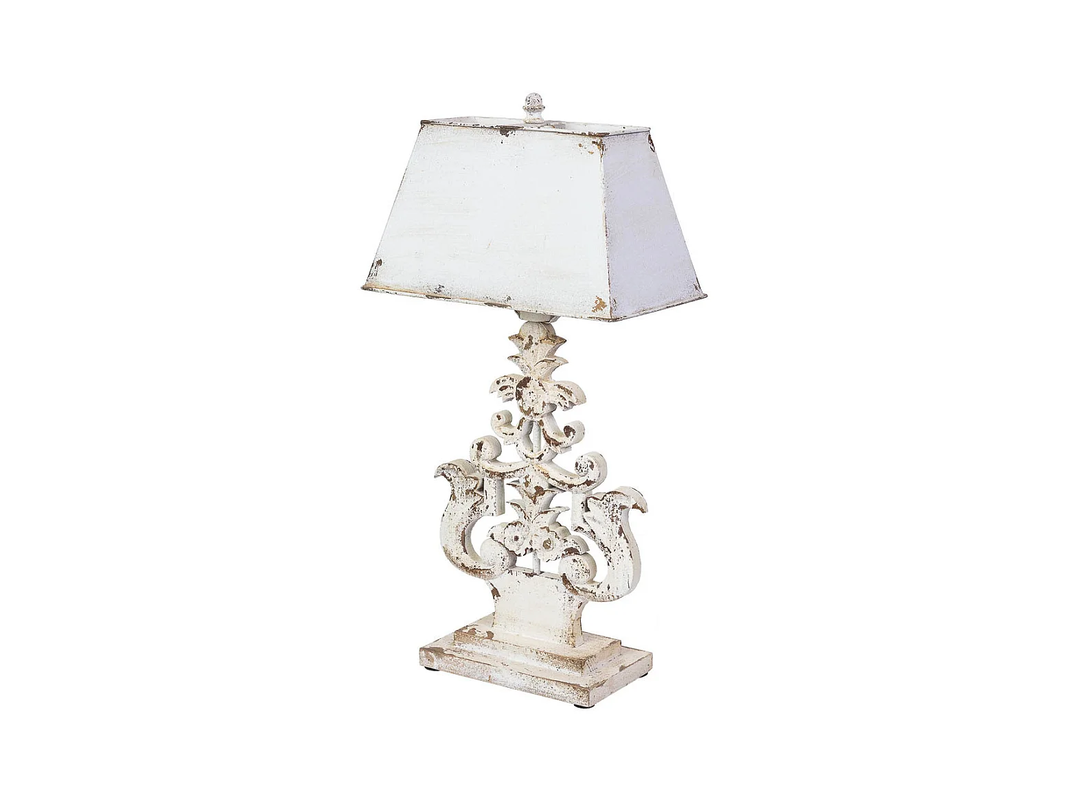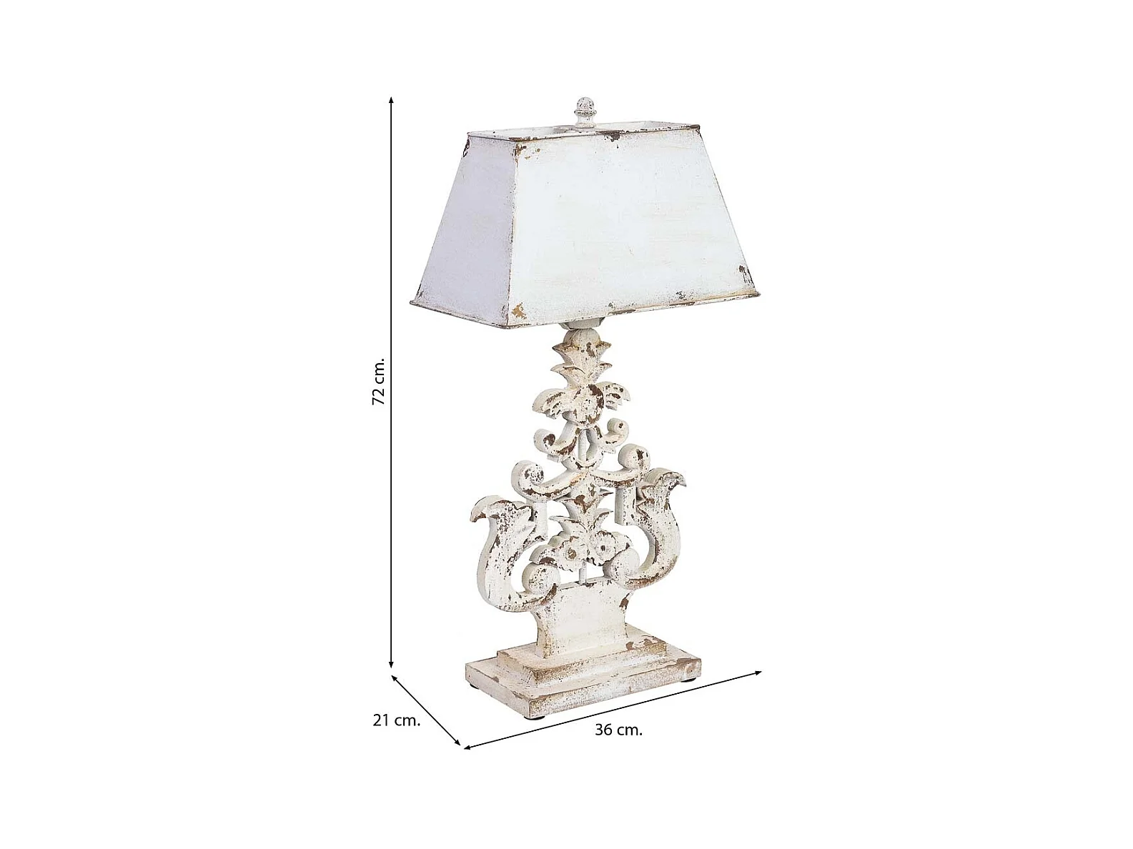Lampara de mesa de madera y metal blanca envejecida 36x21x72h cm