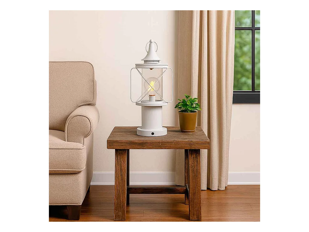 Lámpara de mesa de metal blanco 18x18x56h cm