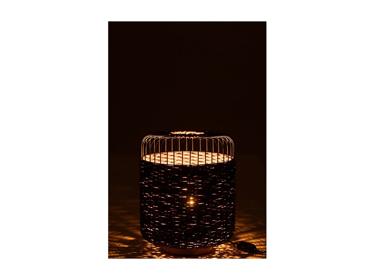 Lámpara de mesa de metal y fibra marrón 27x27x34.5 cm