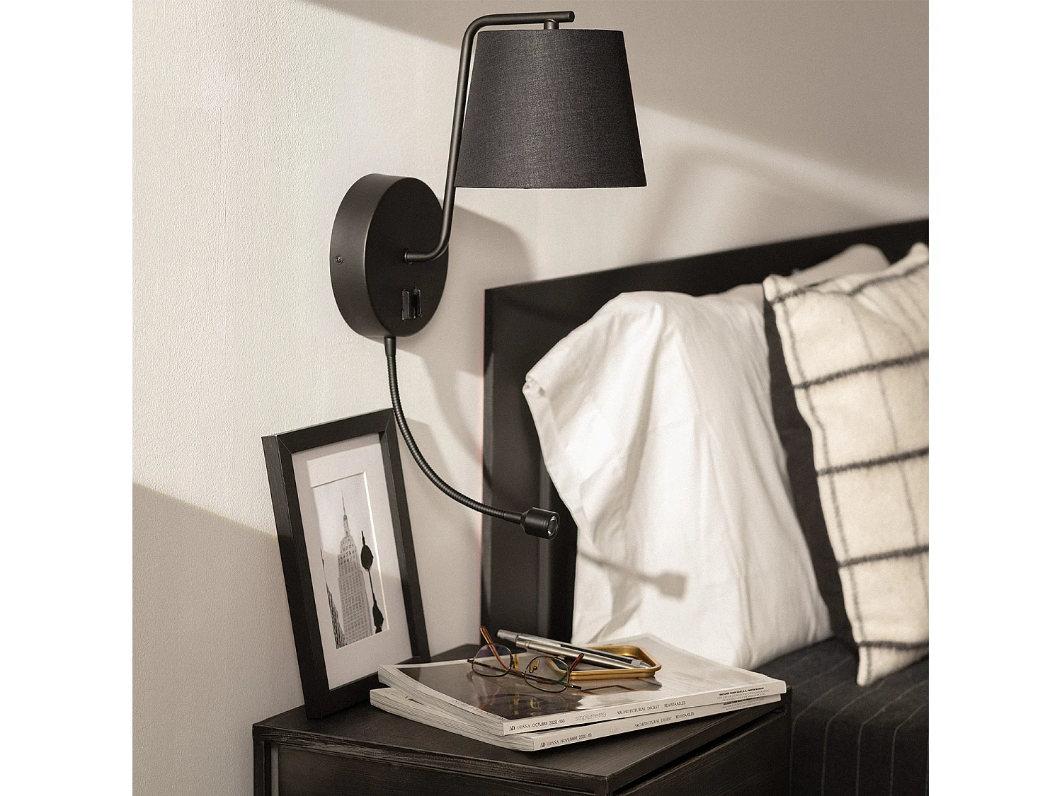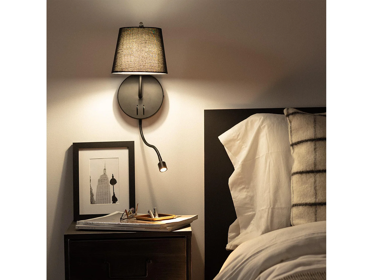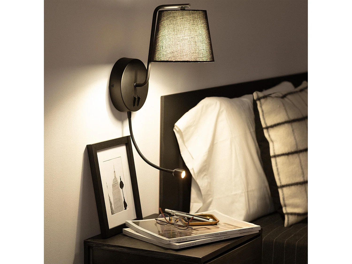 Lámpara de Pared de Metal con Flexo LED de Lectura Kuomba