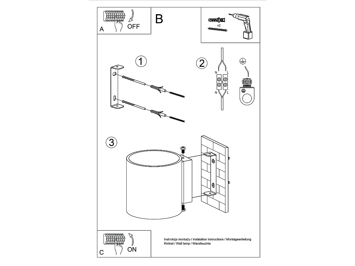 Lámpara de pared Orbis industrial de concreto - 1 fuentes luminosas - L.10 x A.10 cm - beige