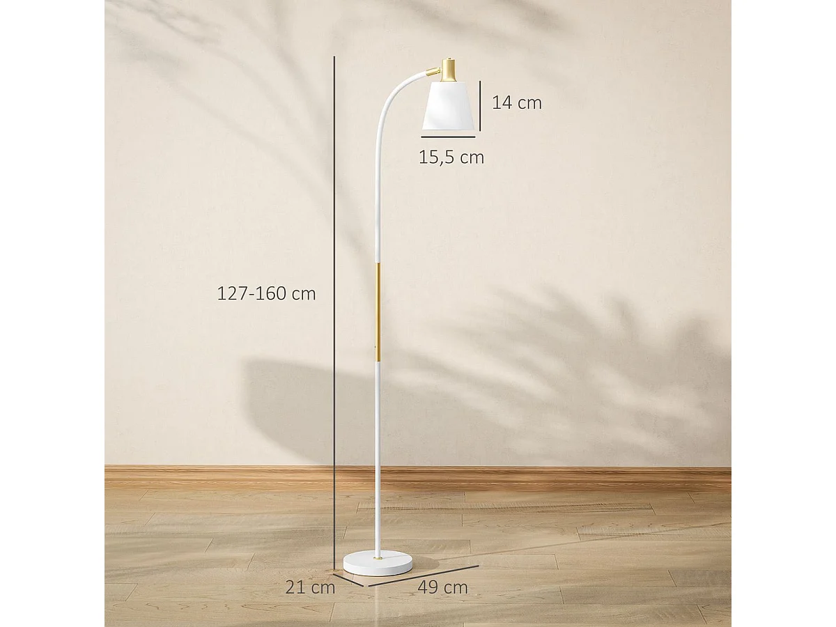 Lámpara de pie Bronx Homcom ángulo + altura ajustable blanco/dorado 127-160x49x21 cm