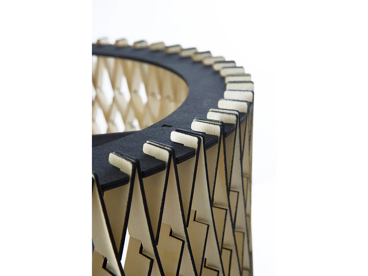 Lámpara de pie con tulipa de contrachapado natural y negro