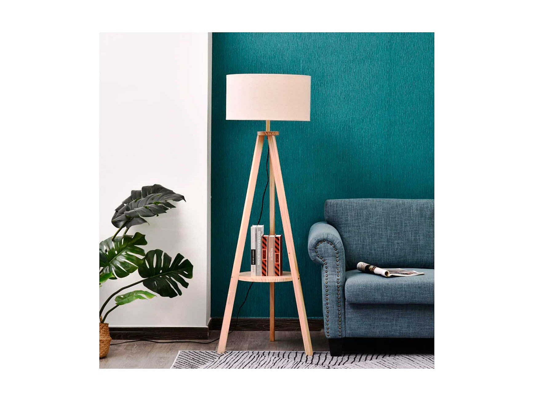 Lámpara de pie madera y beige 50x50x154cm HOMCOM