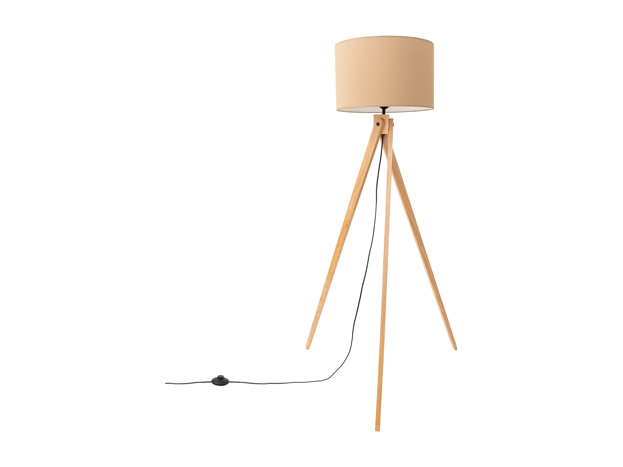 Lámpara de pie Natt moderno de tela/PVC/madera - 1 fuentes luminosas - L.77 x A.140 cm - color topo/madera natural