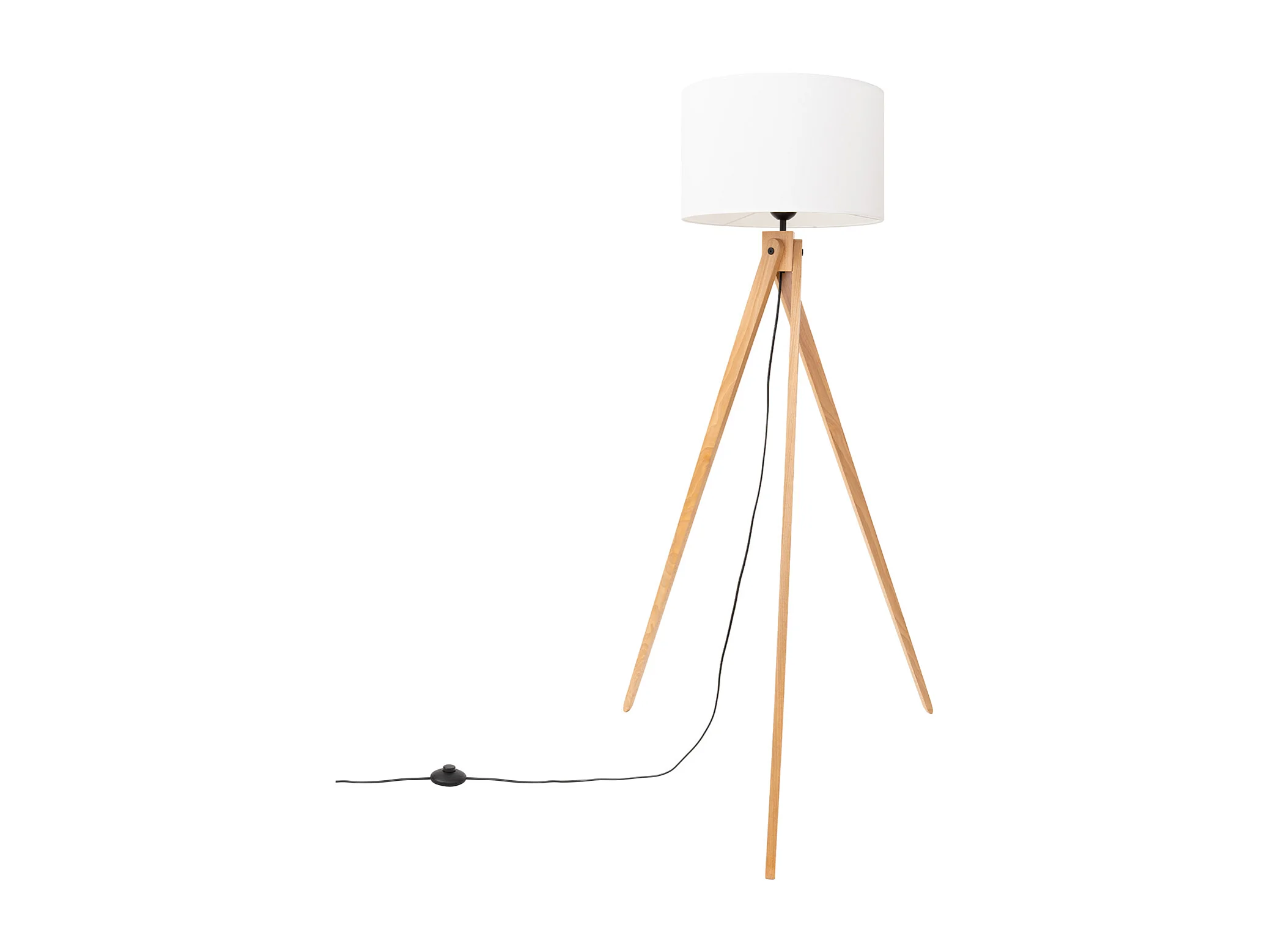 Lámpara de pie Natt moderno de tela/PVC/madera - 1 fuentes luminosas - L.77 x A.140 cm - madera blanca/natural