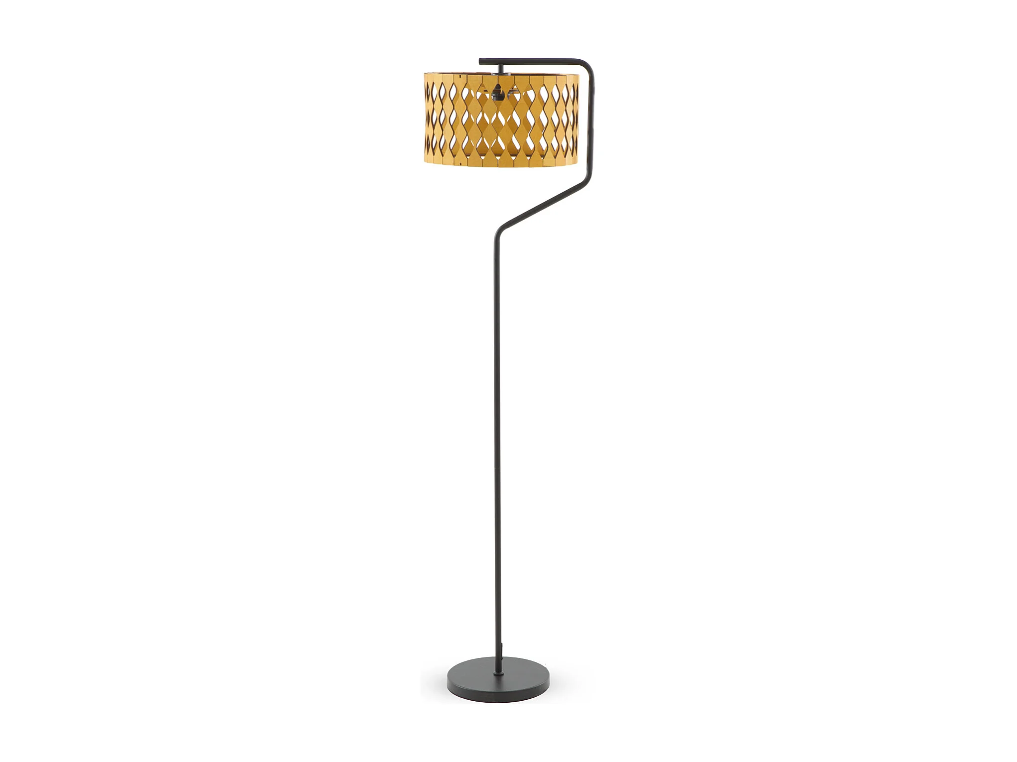 Lámpara de pie con tulipa de contrachapado natural y negro