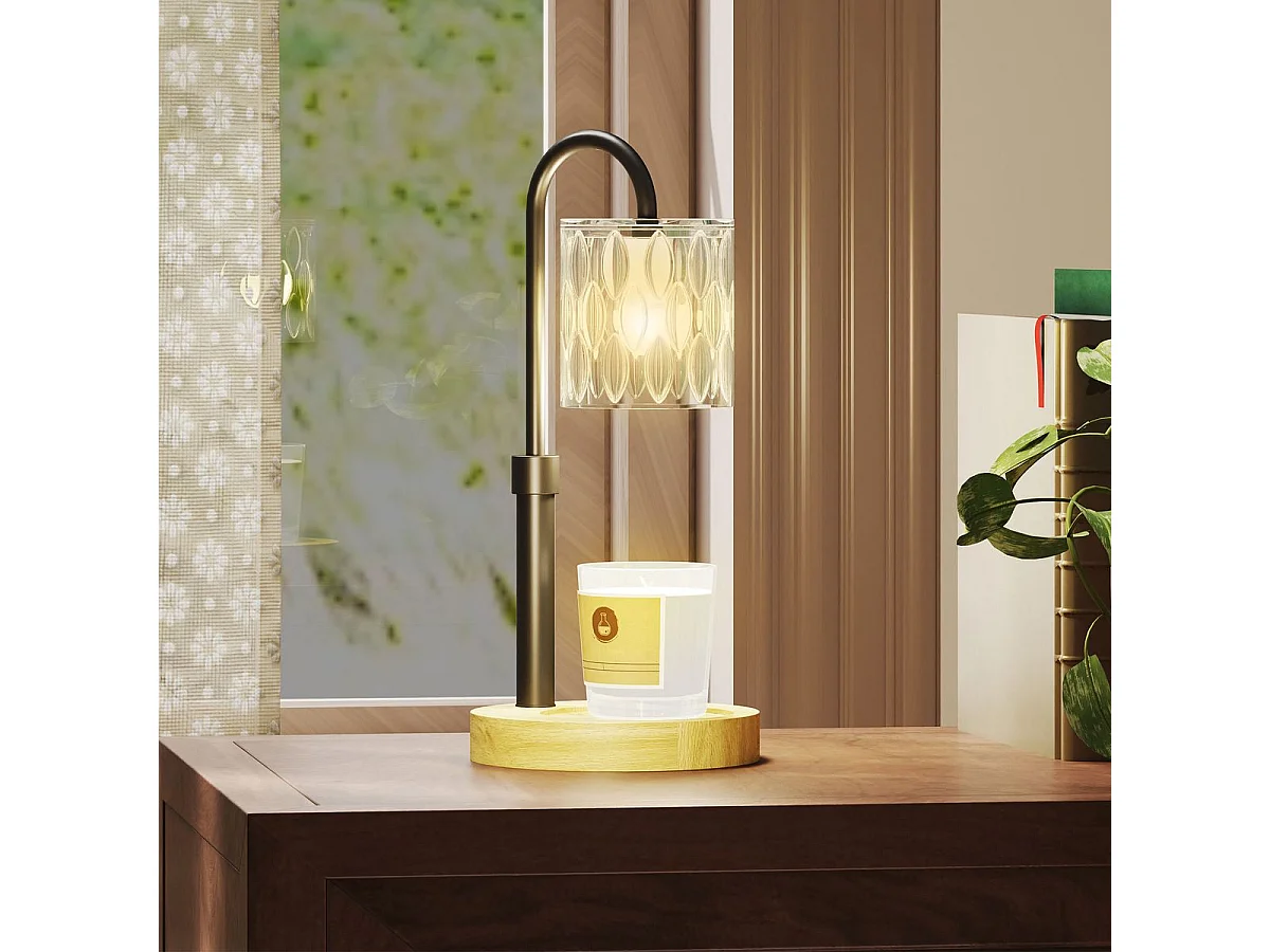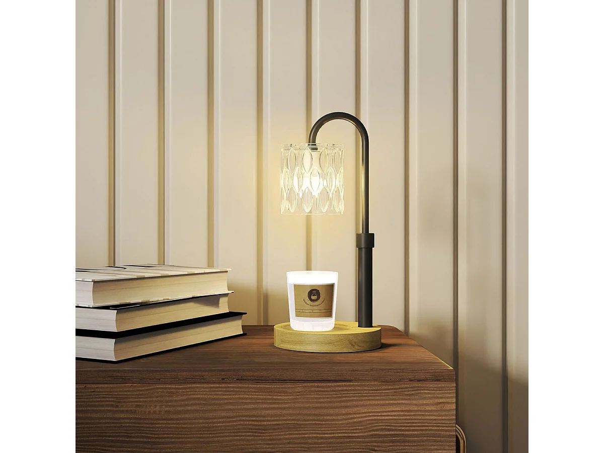 Lámpara de sobremesa Lirio Homcom calefactora de velas negro/natural Ø15x32,5 cm