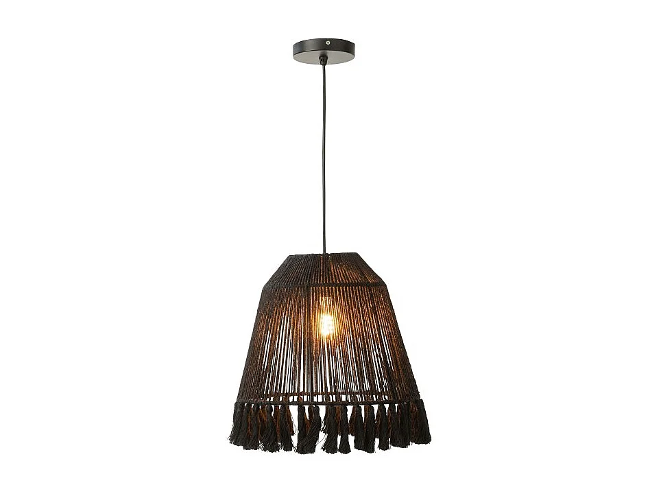 Lámpara de techo de yute y metal negro 33x33x40 cm.