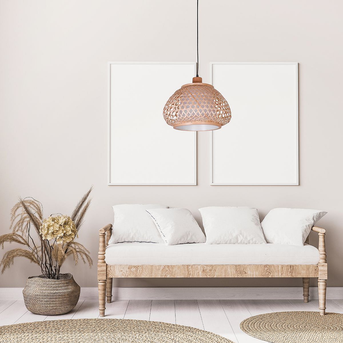 Lámpara colgante de rafia beige y metal negro - Diseño bohemio chic para un interior acogedor