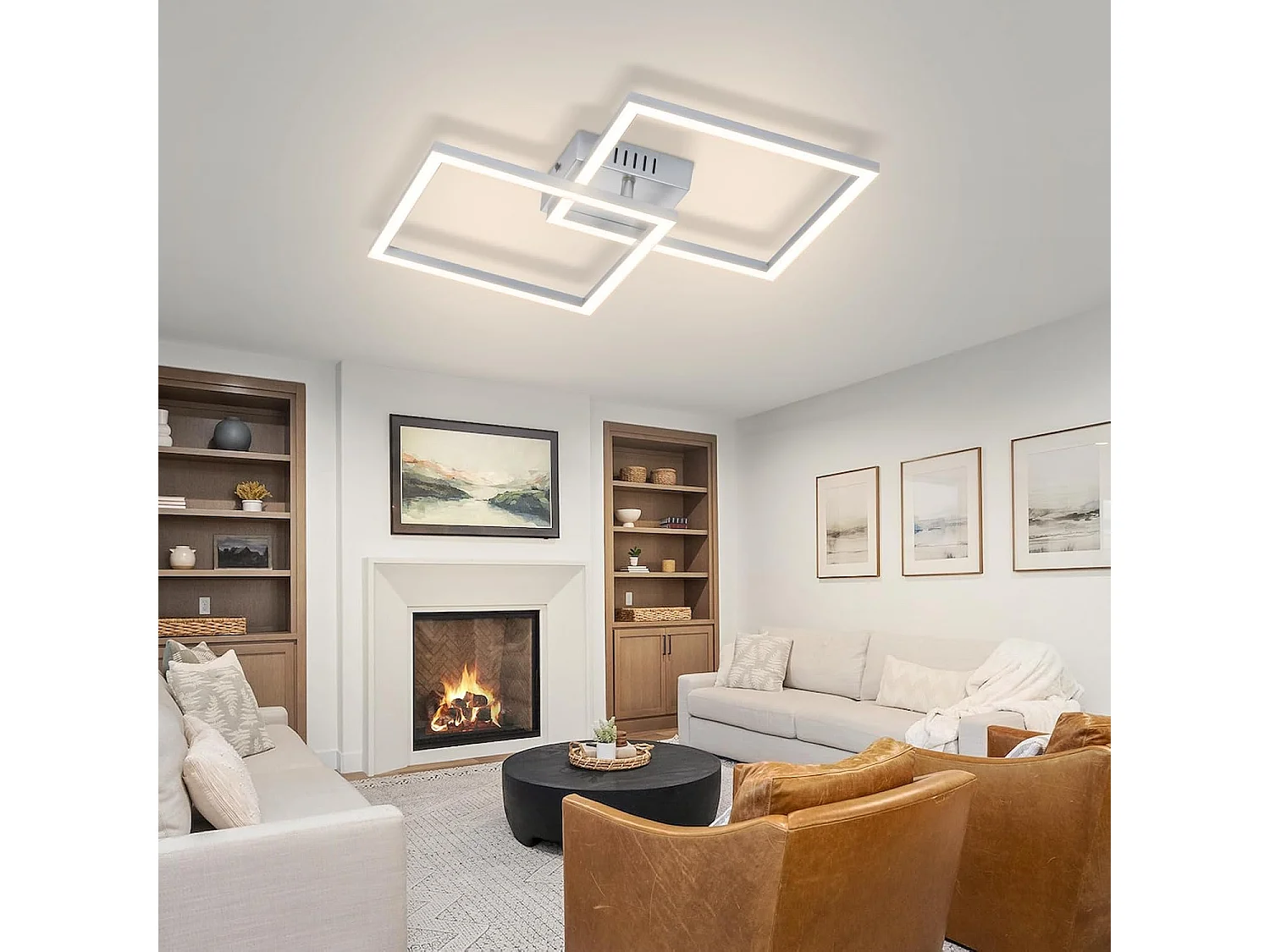 NETTLIFE Lámpara de techo LED regulable: 55 cm, moderna lámpara de techo de 2 anillos, 36 W, diseño con control remoto, para dormitorio,