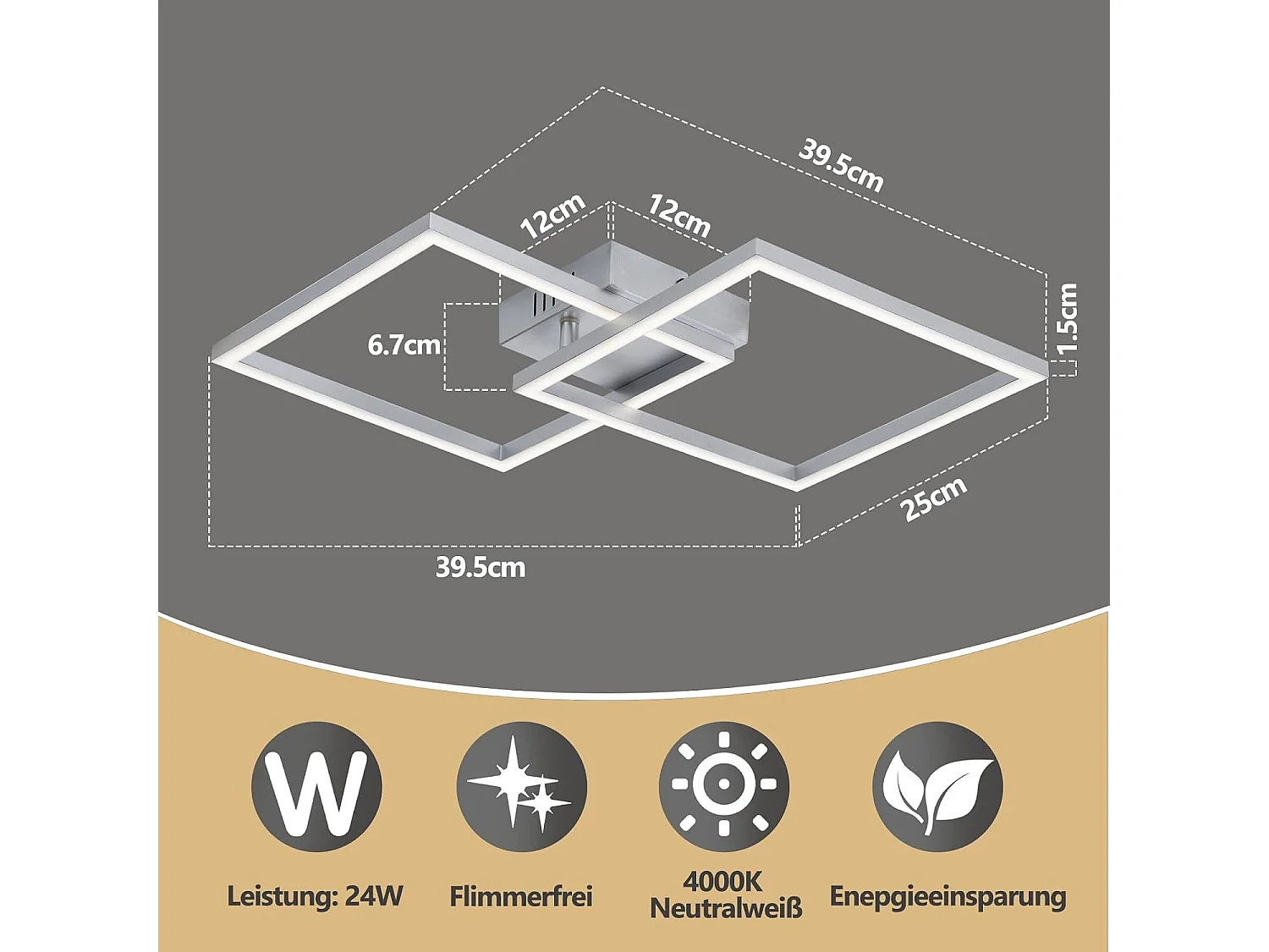 Lámpara de techo LED Nettlife para dormitorio - Lámpara plateada de 24 W, blanco neutro 4000 K, ajustable, diseño moderno