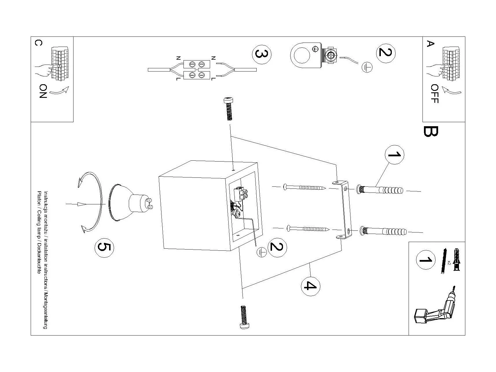 Lámpara de techo Quad industrial de concreto - 1 fuentes luminosas - L.10 x A.10 cm - beige