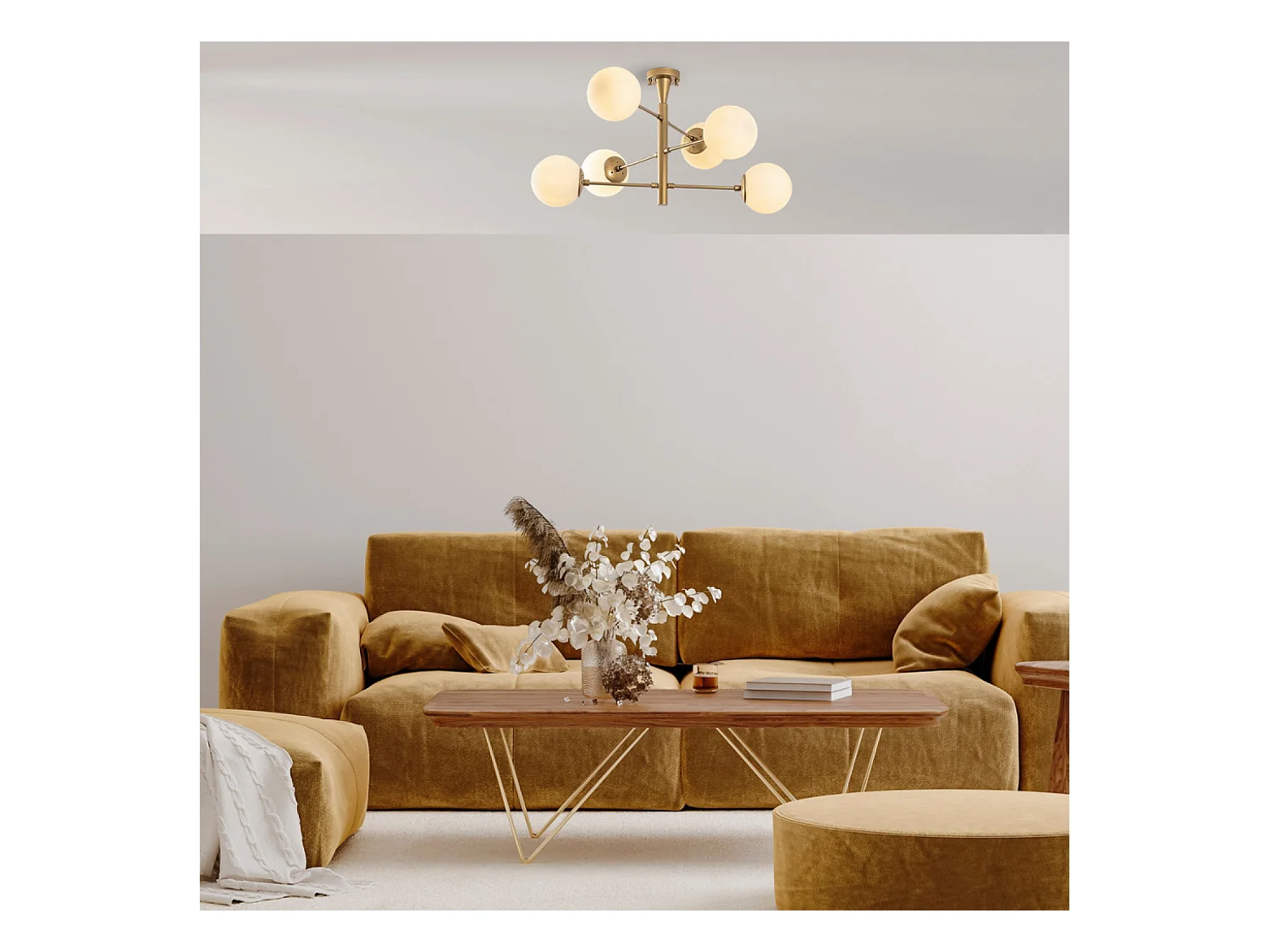 Lámpara de techo vintage dorada ÉLÉONORE - 6 luces para una iluminación brillante y un ambiente cálido
