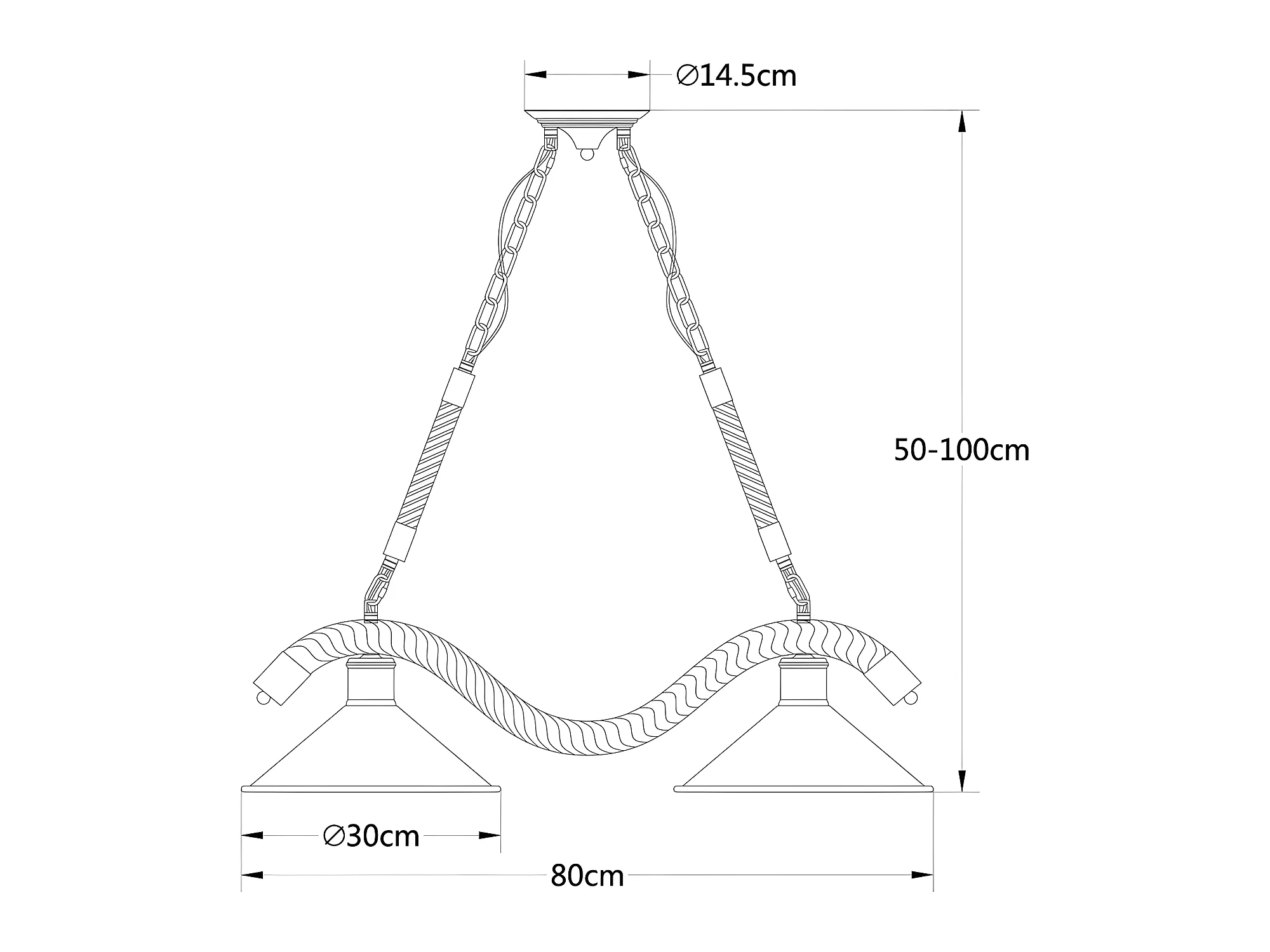 Lampara Lineal 2 Luces Soga Metal Acabado Negro