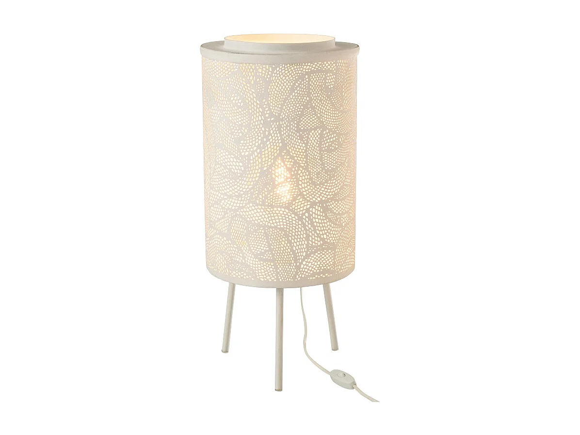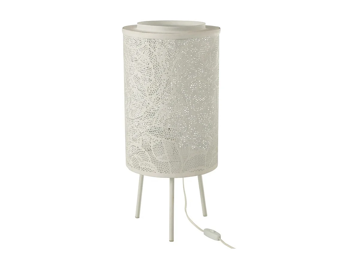 Lámpara perforada de pie de metal blanco de 27x27x66 cm
