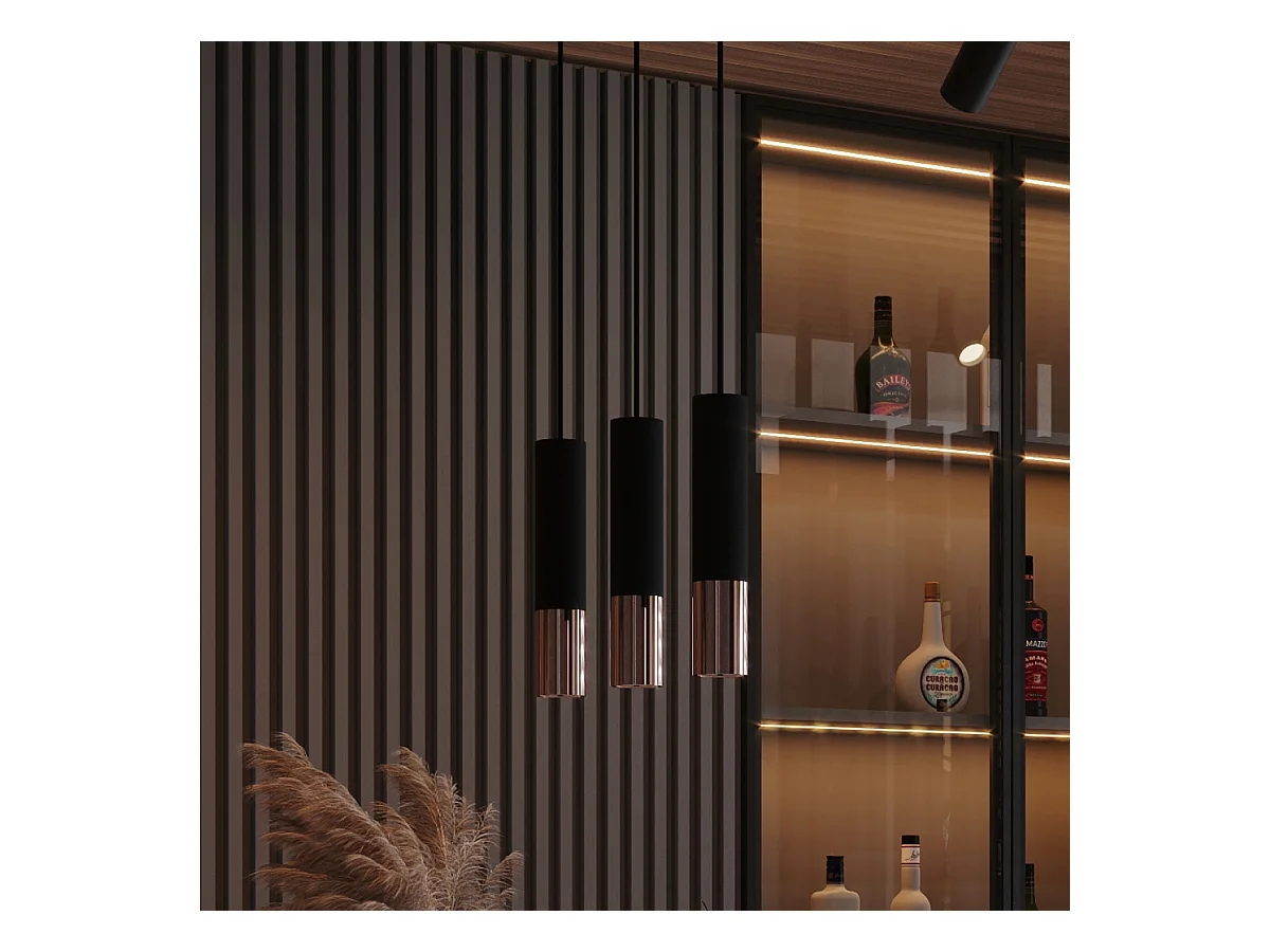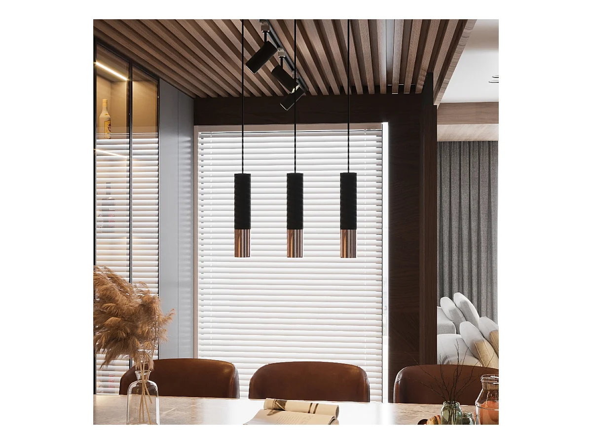 Lámparas colgantes Zarpex moderno de acero - 3 fuentes luminosas 3000K - L.20 x A.90 cm - negro/cobre