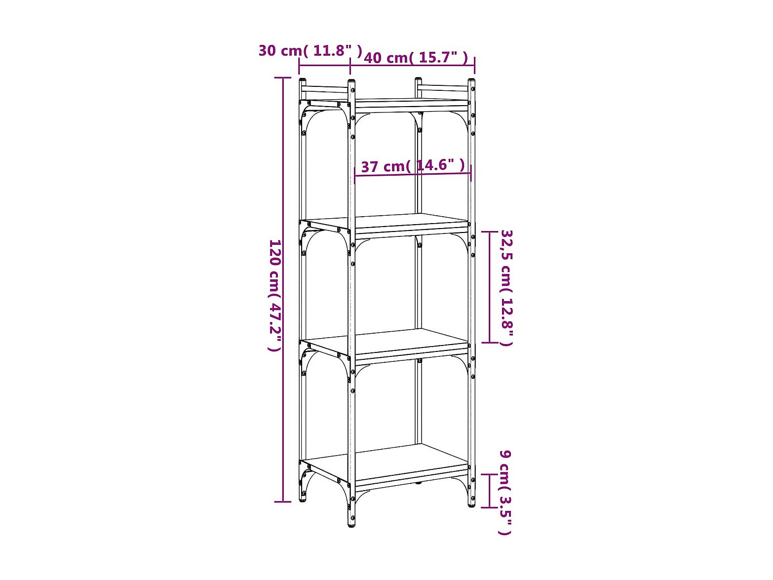Lars Librería 4 estantes madera ingeniería roble ahumado 40x30x120cm