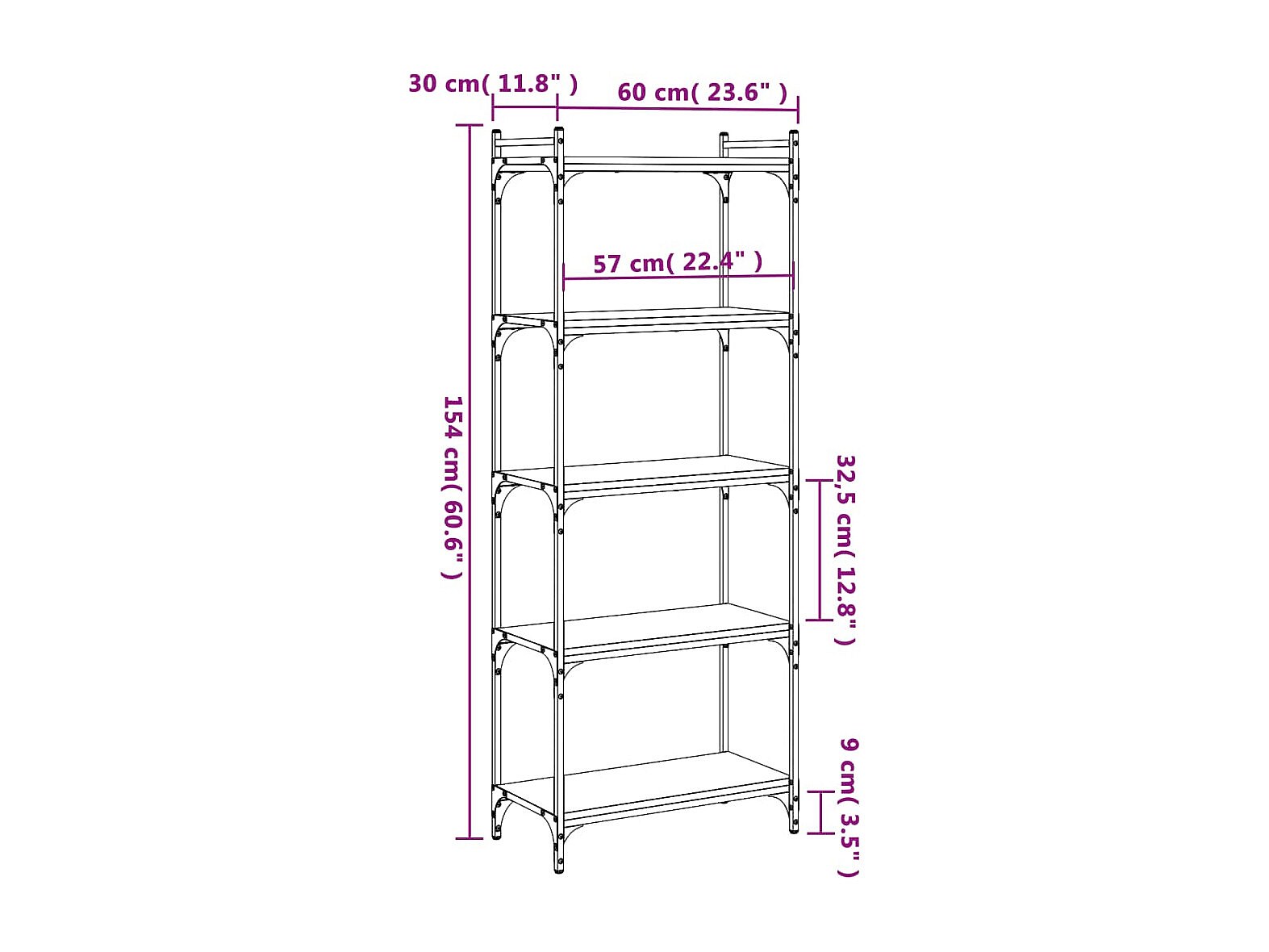 Lars Librería 5 estantes madera ingeniería gris Sonoma 60x30x154 cm